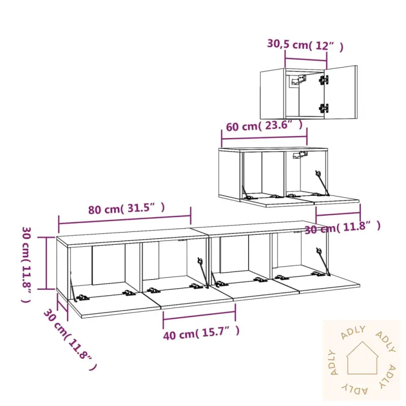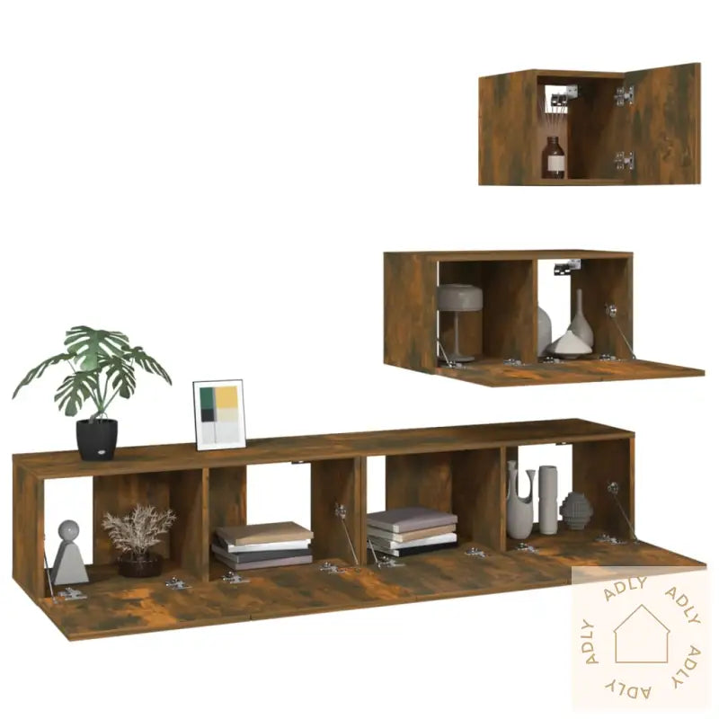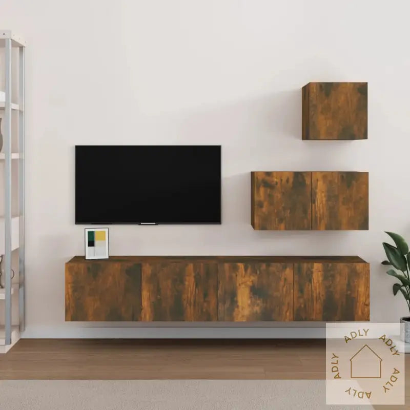 Skrue(r) og plugg(er) til veggmontering følger ikke med. Sørg for å bruke materiell som passer til akkurat dine veggtyper – rådfør deg med fagfolk om du er usikker. Les alltid instruksjonene nøye før du monterer.Hver pakke inkluderer en utførlig monteringsveiledning slik at sammensettingen går lett.Farge: røkt eikMateriale: konstruert treMål øverste TV-benk: 30,5 x 30 x 30 cm (B x D x H)Mål midtre TV-benk: 60 x 30 x 30 cm (B x D x H)Mål nederste TV-benk (hver): 80 x 30 x 30 cm (B x D x H)Leveransen inneholder:1 x øvre TV-benk1 x midtre TV-benk2 x nedre TV-benk