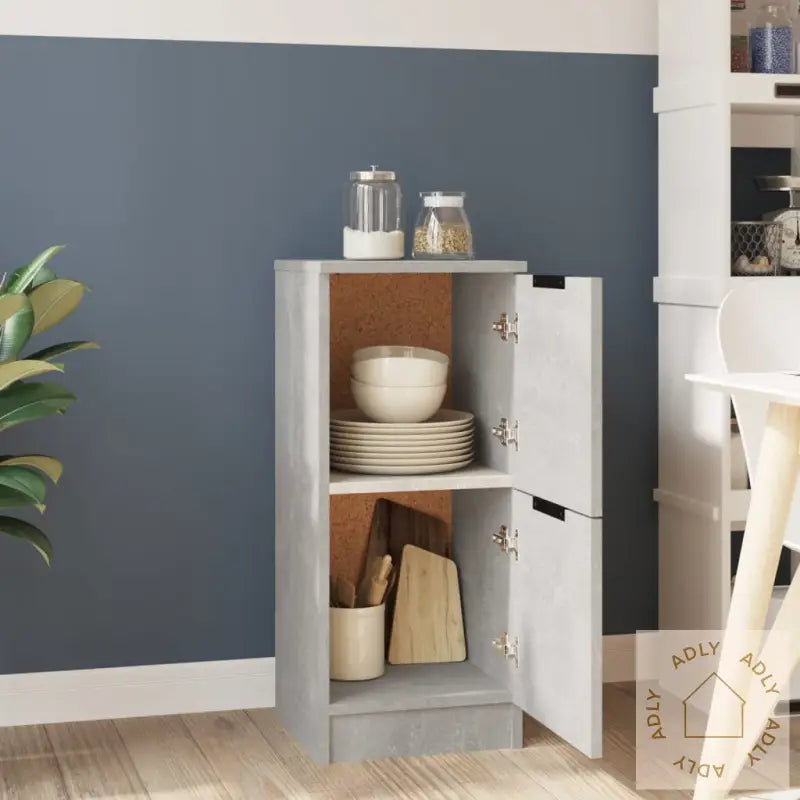 Farge: betonggrå som gir en moderne og stilren lookMateriale: konstruert tre, kjent for sin styrke og stabilitetMål: 30 x 30 x 70 cm (B x D x H)Legal Documents: