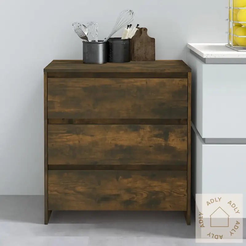 Farge: røkt eikMateriale: konstruert treMål: 70 x 41 x 75 cm (B x D x H)Montering kreves: ja