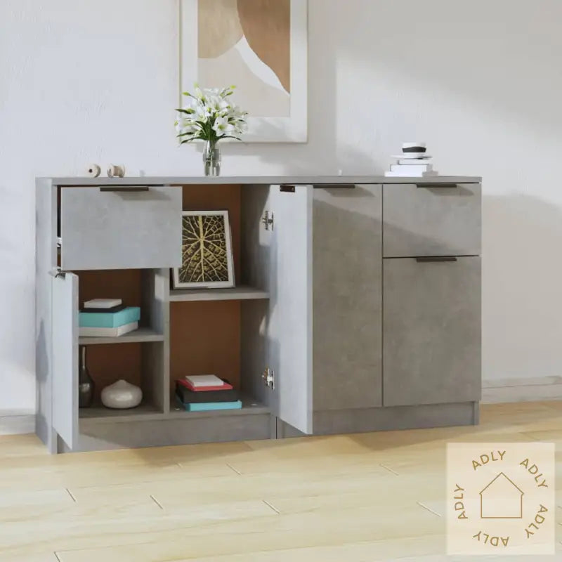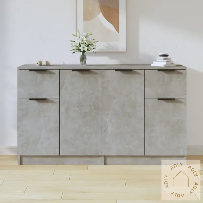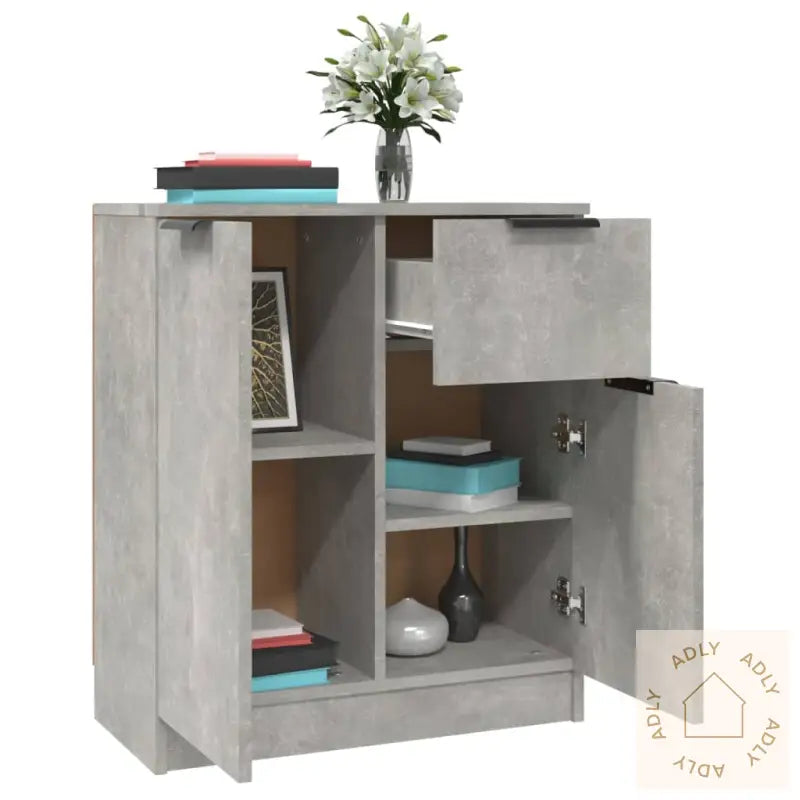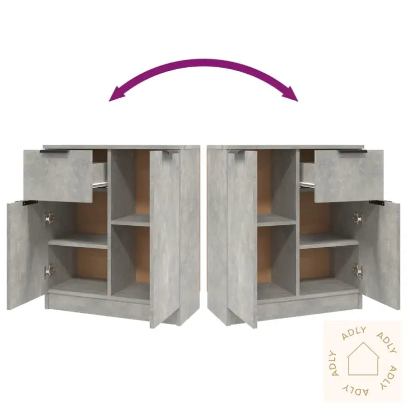 Farge: betonggrå – en moderne fargetone som enkelt matcher annen innredning, enten det er bokhyller eller andre møbler til hjemmet.Materiale: konstruert treMål per skjenk: 60 x 30 x 70 cm (B x D x H)Pakken inneholder:2 x skjenkerLegal Documents: