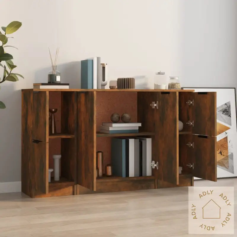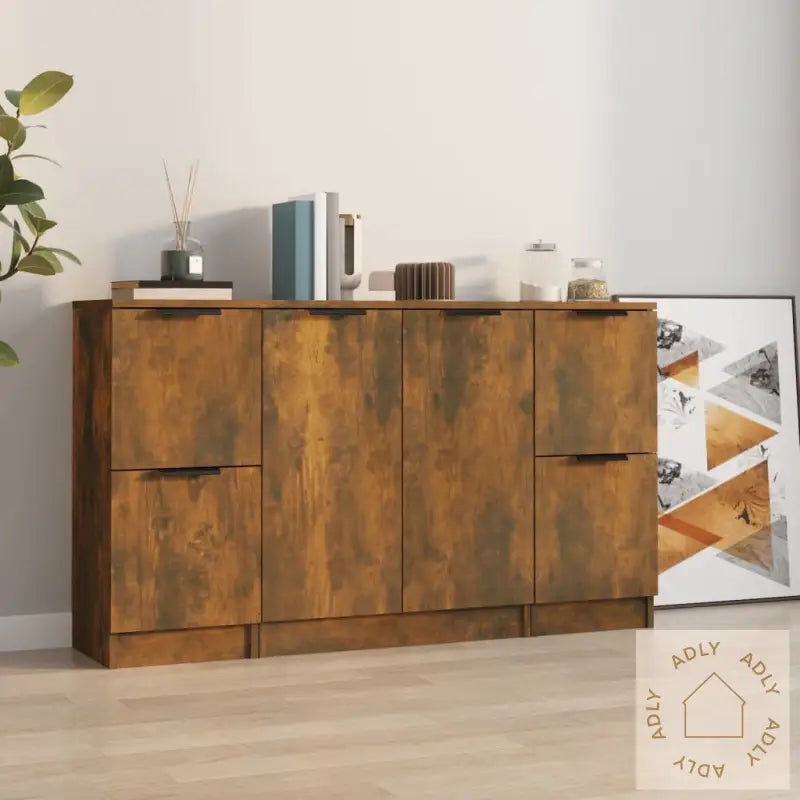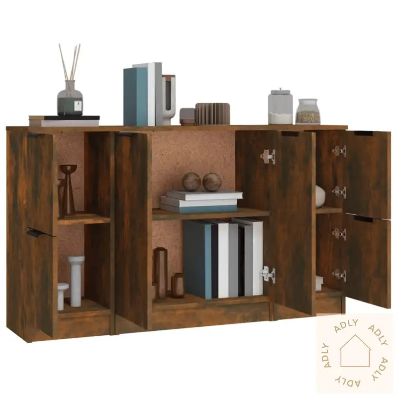 Farge: Røkt eikMateriale: Konstruert treMål (liten skjenk): 30 x 30 x 70 cm (B x D x H)Mål (stor skjenk): 60 x 30 x 70 cm (B x D x H)Leveransen inneholder:2 x skjenker (liten)1 x skjenk (stor)