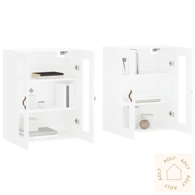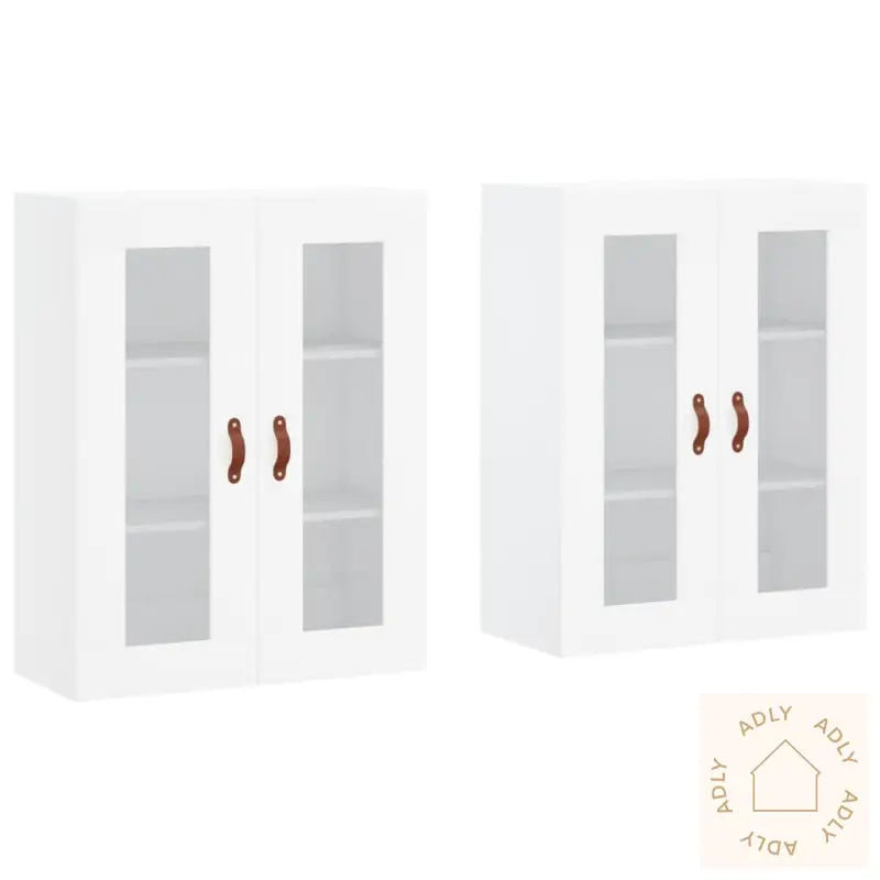 Skruer og plugger til veggmontering følger ikke med. For sikker montering anbefales det å velge festemidler som passer veggtypen hjemme hos deg. Ikke sikker? Rådfør deg gjerne med fagfolk. Se nøye gjennom instruksjonene før du starter monteringen for å sikre et godt resultat.Farge: hvitMaterialer: konstruert tre, glassMål (hver): 69,5 x 34 x 90 cm (B x D x H)Montering kreves: jaLeveransen inneholder:2 x vegghengte skap