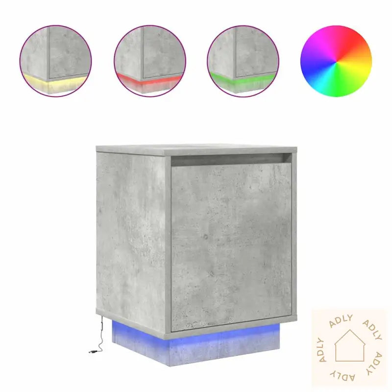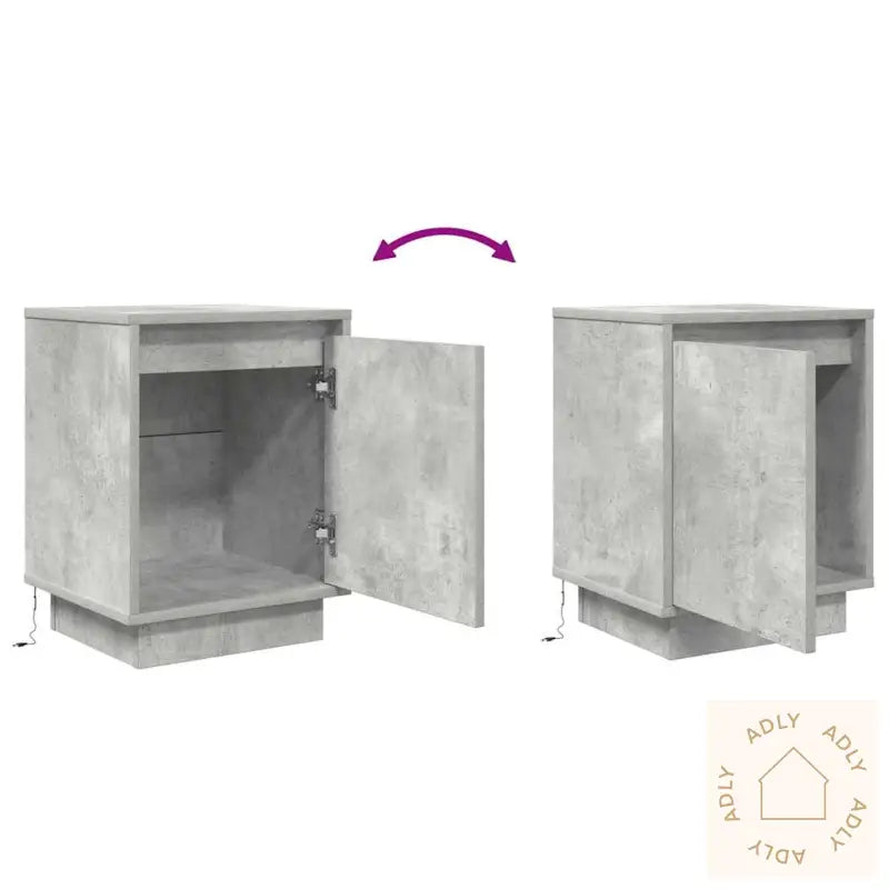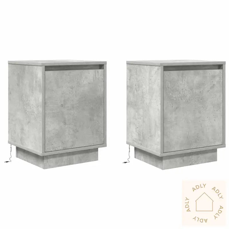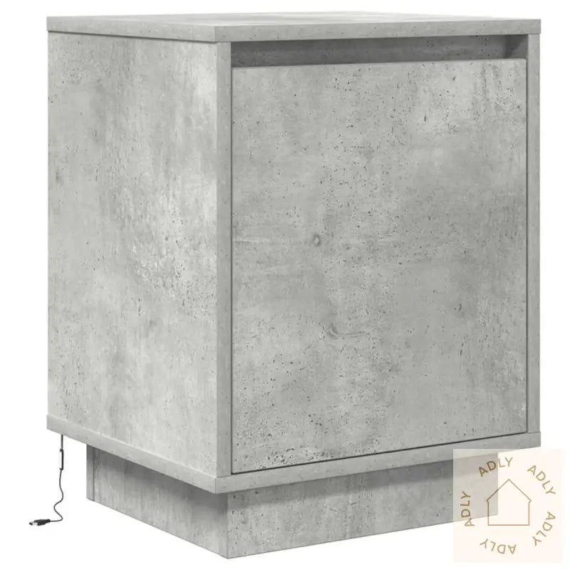 LED-systemet har en USB-kontakt som må kobles til en sertifisert 5V USB-strømkilde (ikke inkludert i pakken).Farge: betonggråMateriale: konstruert treMål (hver): 38 x 34 x 50 cm (B x D x H)Total vektkapasitet (stk): 60 kgMontering kreves: jaLeveransen inneholder:2 x nattbord