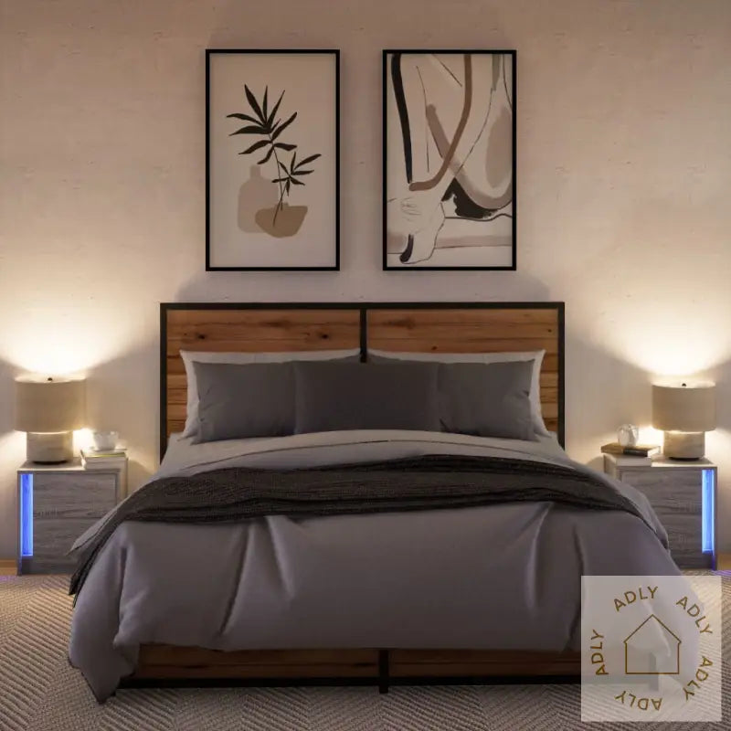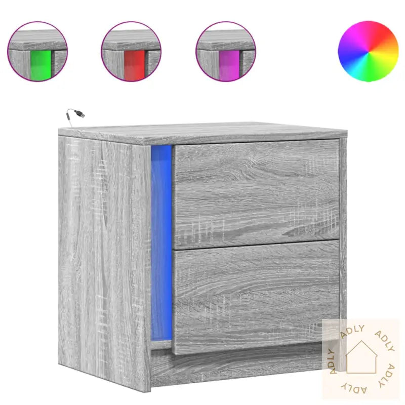 Holdbart materiale: Nattbordene er laget av konstruert tre av høy kvalitet med en glatt overflate. Dette materialet gir både styrke og stabilitet, samtidig som det tåler daglig bruk og har god motstand mot fuktighet – perfekt for deg som vil ha slitesterke møbler til hjemmet.Rikelig med oppbevaringsplass: Her får du mye plass til å holde eiendelene dine ryddige og lett tilgjengelige, enten det er bøker, ladere eller andre småting. Den gode organiseringen gjør det enkelt å skape orden uten at det går på bekostning av stilen.RGB LED-lys for en hyggelig atmosfære: Det innebygde LED-lyset gir deg muligheten til å justere både farger og lysstyrke, slik at du kan tilpasse stemningen etter humør eller anledning. Skap en avslappende atmosfære på soverommet, eller gjør stua ekstra innbydende med personlig lysshow.Enkelt å vedlikeholde: Den glatte overflaten gjør rengjøringen lett – en fuktig klut er alt som trengs for å holde nattbordene pene, så du slipper tidkrevende vedlikehold og kan bruke tiden på det som betyr mest.Godt å vite: