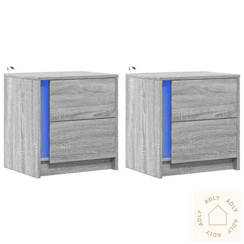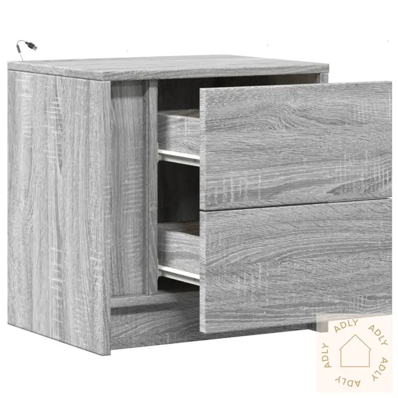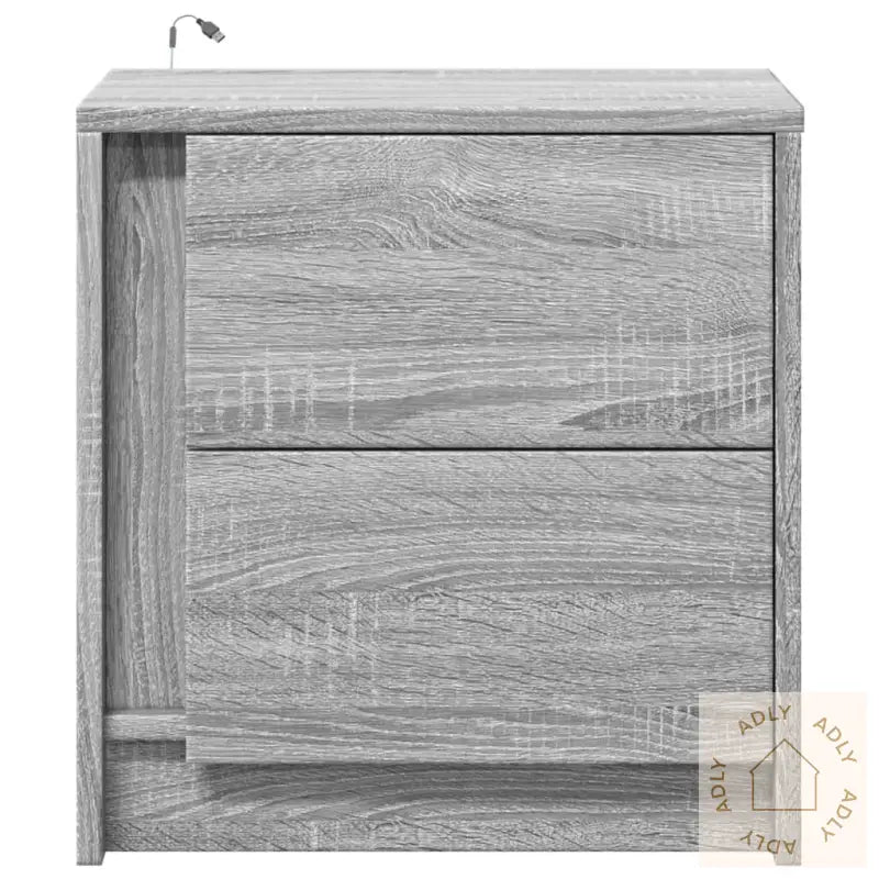 Produktet leveres med en USB-kontakt, og krever en sertifisert 5V USB-strømkilde (ikke inkludert) for å bruke LED-lyset.Farge: grå sonomaMateriale: konstruert treMål: 43 x 34 x 45 cm (B x D x H)Maksimal lastekapasitet (totalt): 50 kg – passer perfekt til lamper, dekor, små bokhyller eller andre stående hyllerMaksimal lastekapasitet (skuff): 5 kgMaksimal lastekapasitet (laminert plate): 40 kgMontering kreves: jaLeveransen inneholder:2 x nattbord
