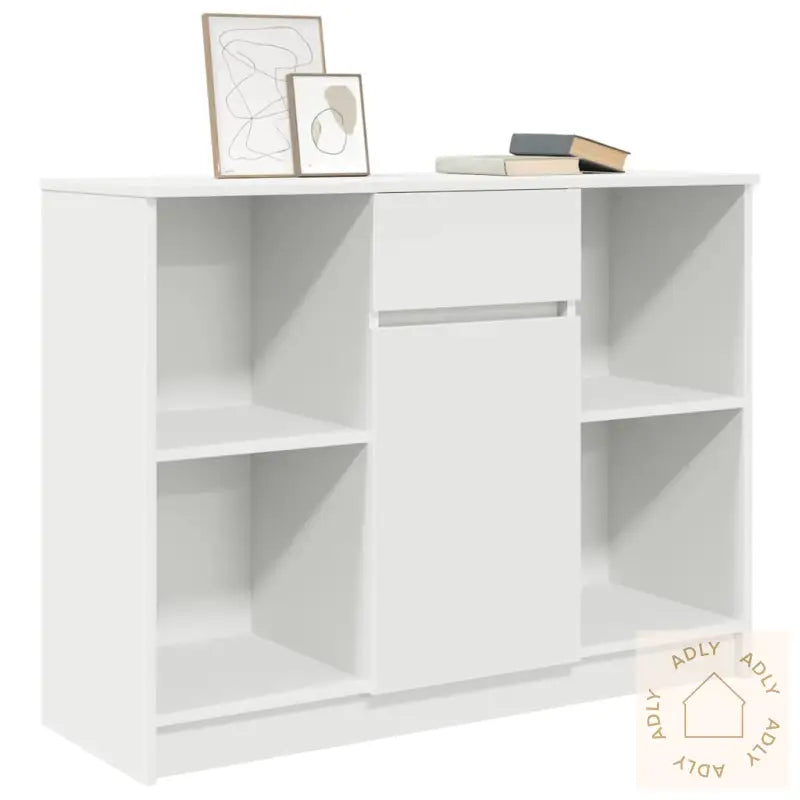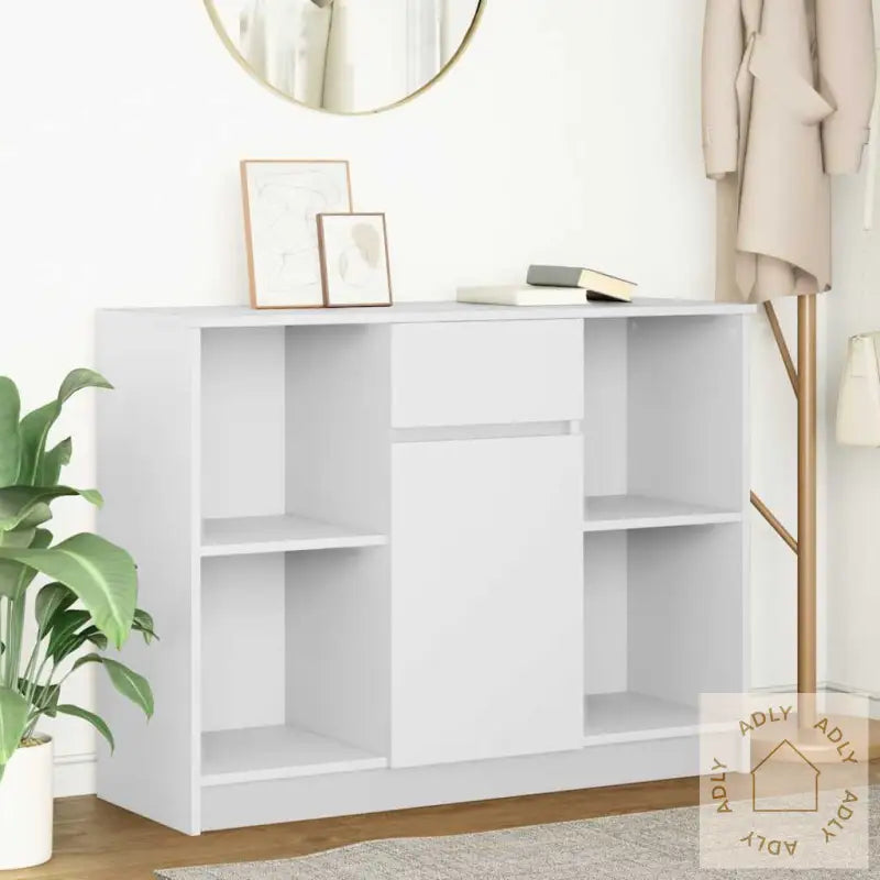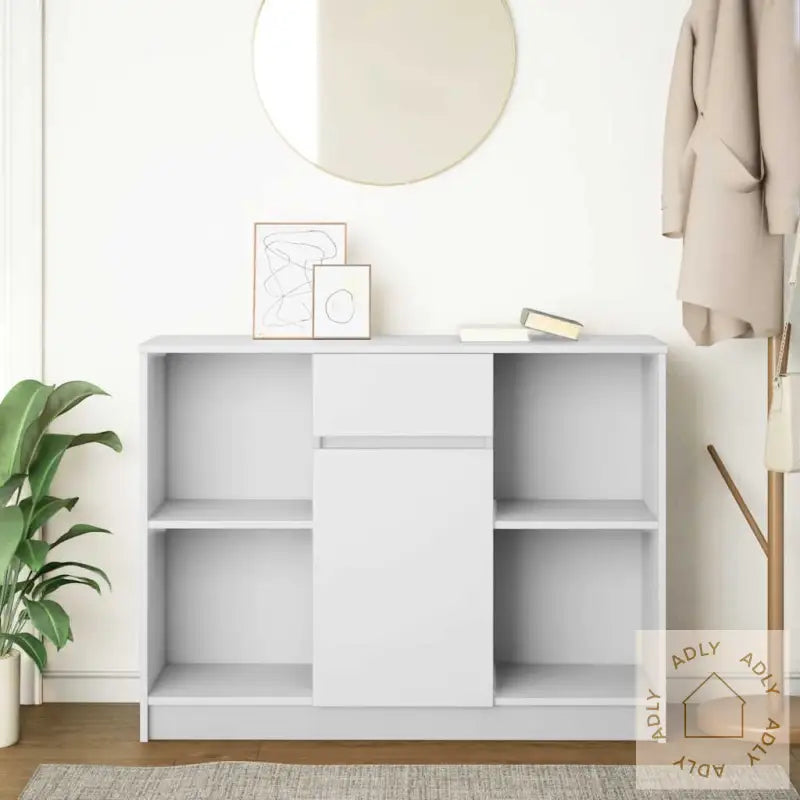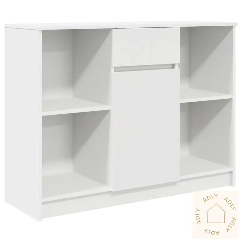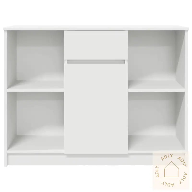 Stabilt og slitesterkt materiale: Skjenken er laget av konstruert tre, et pålitelig materiale med jevn overflate, som tåler fuktighet og er motstandsdyktig mot vridning og sprekker. Dette sørger for lang levetid, noe som er ideelt både for bokhyller og stående hyller samt andre hagemøbler.Rikelig med oppbevaringsplass: Med én dør, to hyller og en skuff har du god plass til å holde eiendelene dine sortert og lett tilgjengelige. Den lukkede døren skjuler gjenstander du ikke ønsker framme, mens skuffen gir ekstra oppbevaringsmuligheter til småting du bruker ofte. De åpne hyllene hjelper deg å organisere forskjellige ting alt etter behov, slik at det alltid ser ryddig ut.Allsidig bruk: Buffetskapet passer inn i alle rom – bruk det for eksempel i stua for å oppbevare bøker eller pyntegjenstander, som en funksjonell løsning på hjemmekontoret til kontorrekvisita, eller i spisestua til servise og tekstiler. Den fleksible og tidløse stilen matcher de fleste interiør og løfter helhetsinntrykket av plassen din samtidig som det gir smart oppbevaringsløsning til alle slags eiendeler.Tilpassbar installasjon: Skjenken kan monteres på to måter, enten med skuff og liten dør til høyre eller venstre, alt etter hva som passer best hjemme hos deg. På denne måten tilrettelegger du lett for både romløsning og dine personlige ønsker når det gjelder sortering av eiendelene dine.Enkelt å vedlikeholde: Den glatte overflaten gjør skjenken lett å rengjøre med en fuktig klut, så du slipper styret med mye vedlikehold og den holder seg pen lenge.Advarsel: