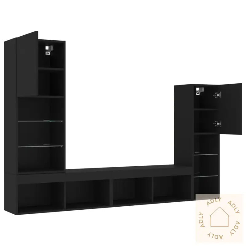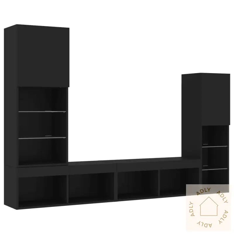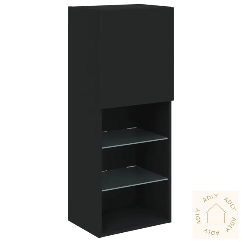 Skruer og plugger til veggmontering følger ikke med. Velg skruer/plugg som passer din veggtype – spør en fagperson om du er usikker. Husk å følge instruksjonene nøye for trygg montering.Produktet har USB-kontakt for strøm til RGB LED-lys. Du trenger en sertifisert 5V USB-strømkilde (ikke inkludert).Farge: svartMaterialer: konstruert tre, glassMontering kreves: jaLeveransen inneholder:1 x veggskap: 30,5 x 30 x 102 cm (L x B x H)1 x veggskap: 40,5 x 30 x 102 cm (L x B x H)2 x veggskap: 80 x 30 x 30 cm (L x B x H)
