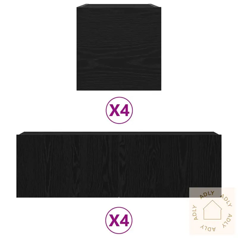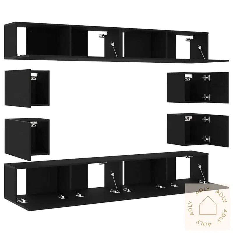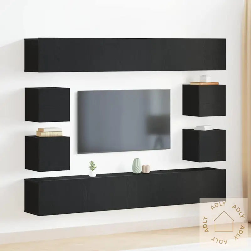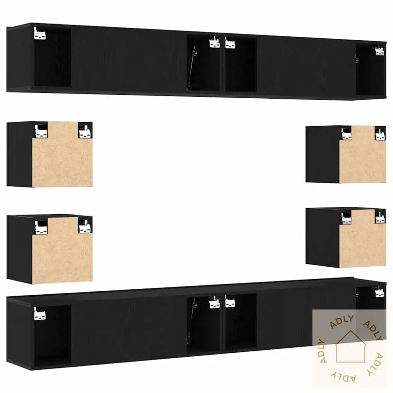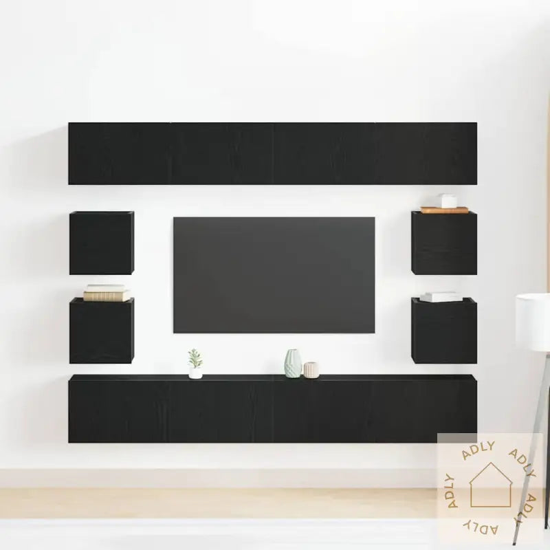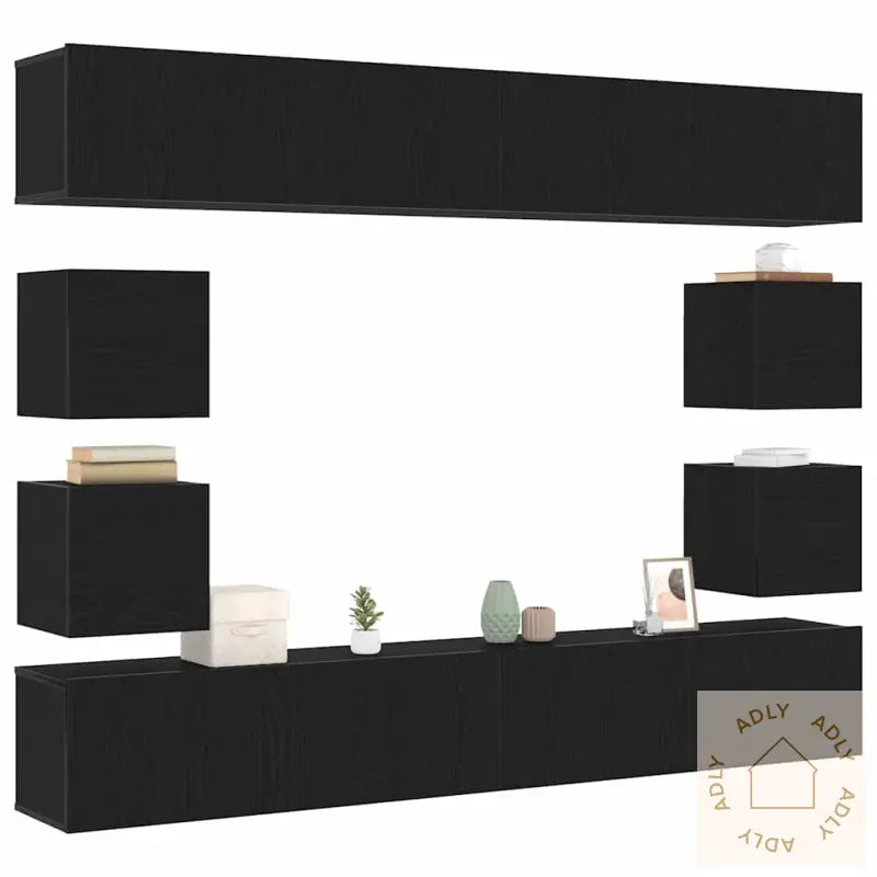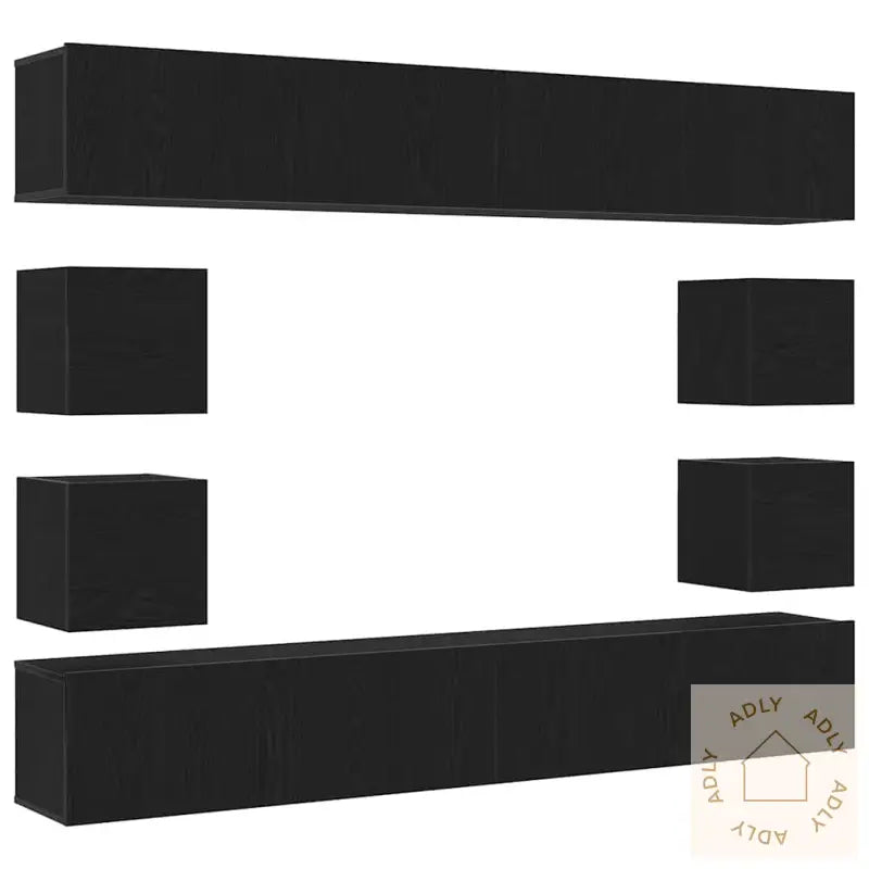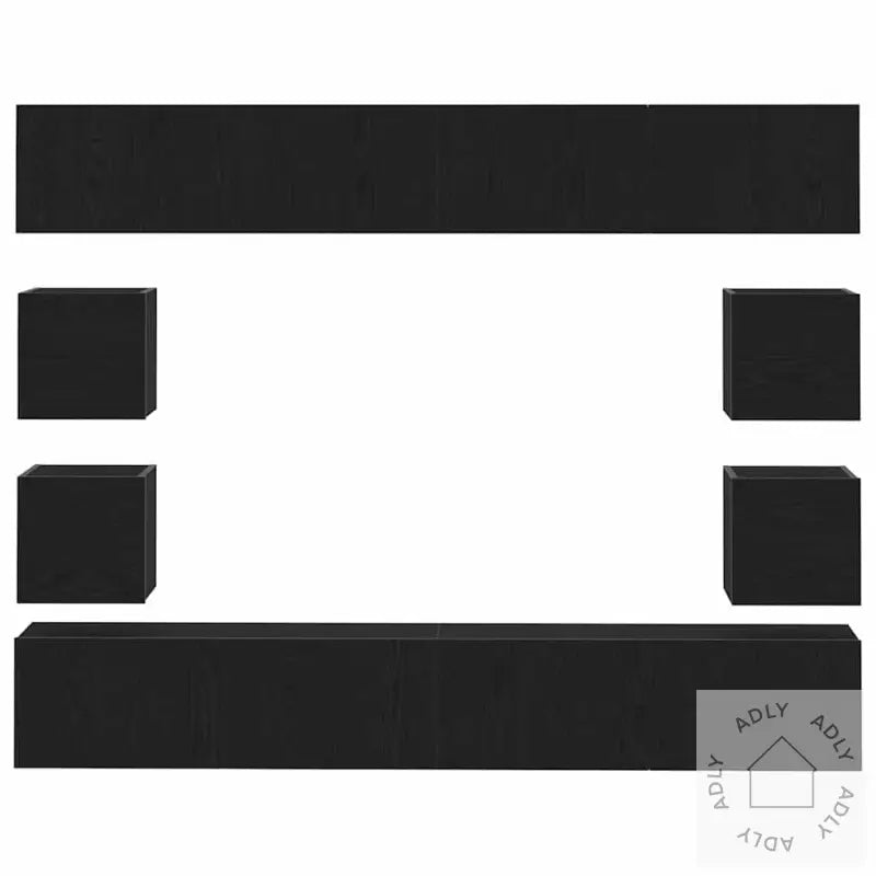 Oppgrader stuen eller kontoret ditt med vidaXL sitt 6-delte TV-skap-sett! Dette moderne møbelet passer rett inn bland populære møbler til hjemmet, spesielt om du er ute etter praktiske og smarte lagringsløsninger som gir mer orden i rommet. Det vegghengte skapsettet leveres i elegant svart eik, og består av fem solide enheter som passer like fint til underholdningssentre som til å brukes som stilige bokhyller og stående hyller. Hver del har en matt finish som gir et tidløst uttrykk, samtidig som skapene gir god plass til både elektronikk, bøker eller favorittgjenstander – perfekt for deg som vil vise frem litt ekstra personlighet uten at det blir rotete.