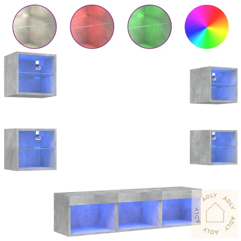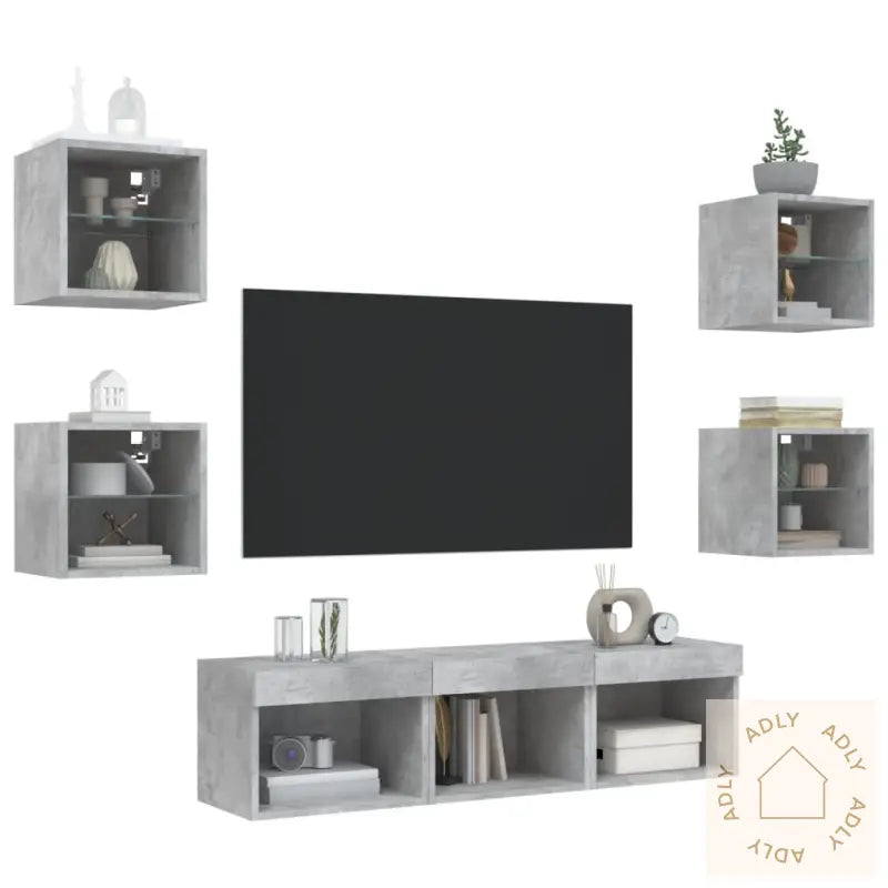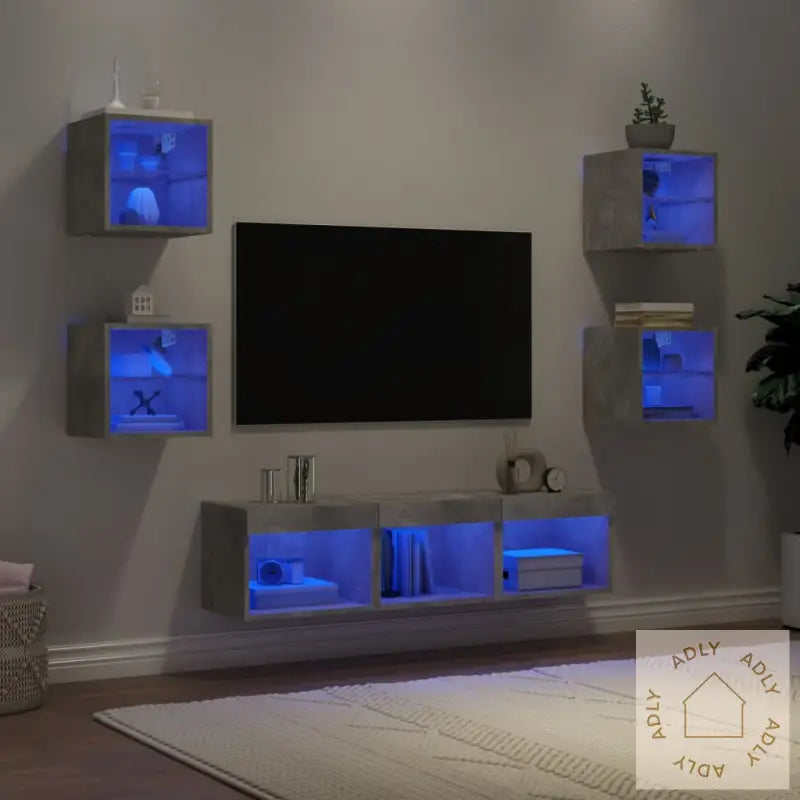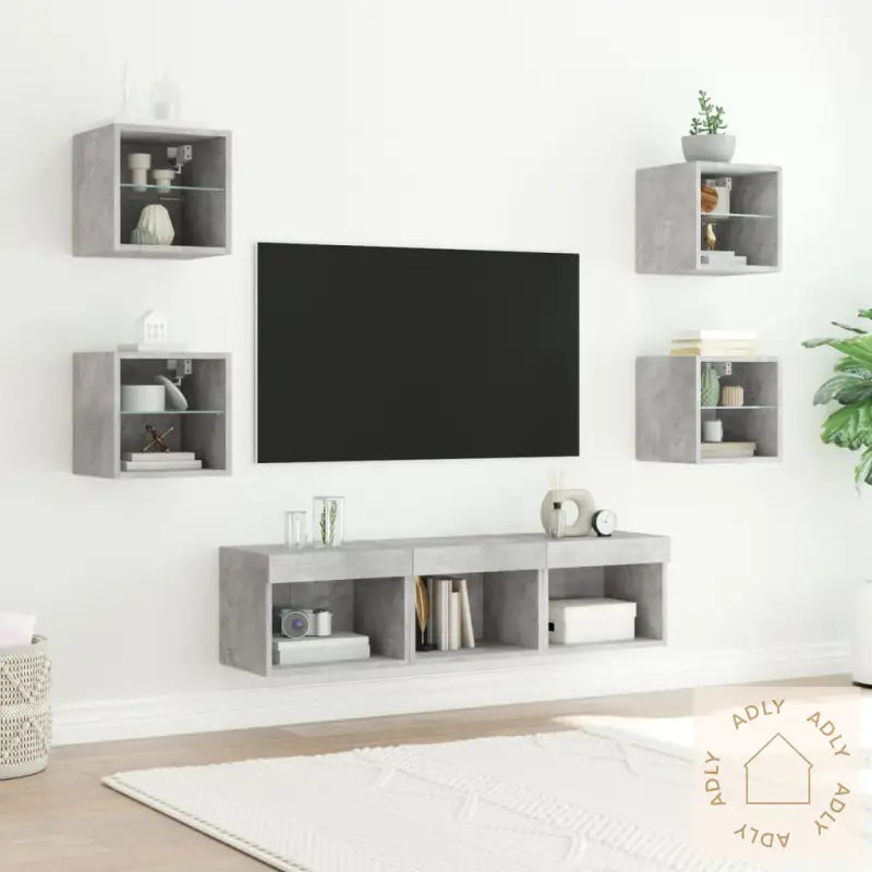 Solid materiale: Det konstruerte treverket gir en robust og holdbar struktur som varer lenge. Overflaten er glatt, noe som gjør rengjøringen enkel, samtidig som materialet tåler både fuktighet og daglig bruk uten problemer.RGB LED-lys: Veggskapene har stemningsskapende RGB LED-lys som gir et innovativt preg til møblene dine. Med flere fargevalg og justerbare innstillinger kan du skape akkurat den stemningen du vil ha, enten du ser på TV eller ønsker en koselig atmosfære på kvelden. Disse RGB LED-lysene gir tv-enheten trendy utseende og løfter stilen på rommet.Veggmontert design: Den plassbesparende, vegghengte løsningen sørger for at du får frigjort gulvplass, slik at du kan holde området mer åpent og ryddig. Perfekt for små rom eller moderne hjem der smidig lagring er et poeng.Rikelig med lagringsplass: De ulike skapene gir deg masse plass til å oppbevare bøker, DVD-er, magasiner, elektronikk eller medieutstyr. Alt holder seg godt organisert og alltid lett tilgjengelig, noe som gjør hverdagen enklere for hele familien.Allsidig design: Veggskapene fungerer like bra som tv-benk, ekstra lagringsplass på soverom, eller til praktisk oppbevaring på arbeidsplassen. Den smarte utformingen gjør at en ellers tom vegg forvandles til en nyttig og stilig funksjon i hjemmet ditt.Godt å vite: