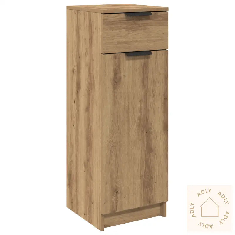 Moderne appell: Håndverker eik-finishen gir skapet et minimalistisk og sofistikert uttrykk, og sørger for en lun og stilfull atmosfære enten det brukes på badet, kontoret eller sammen med andre møbler i stuen.