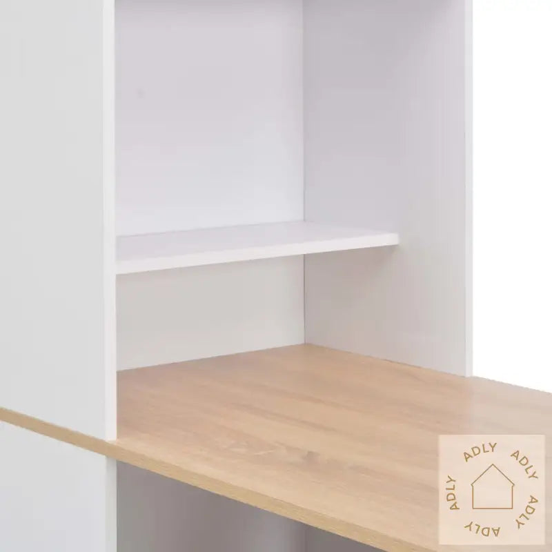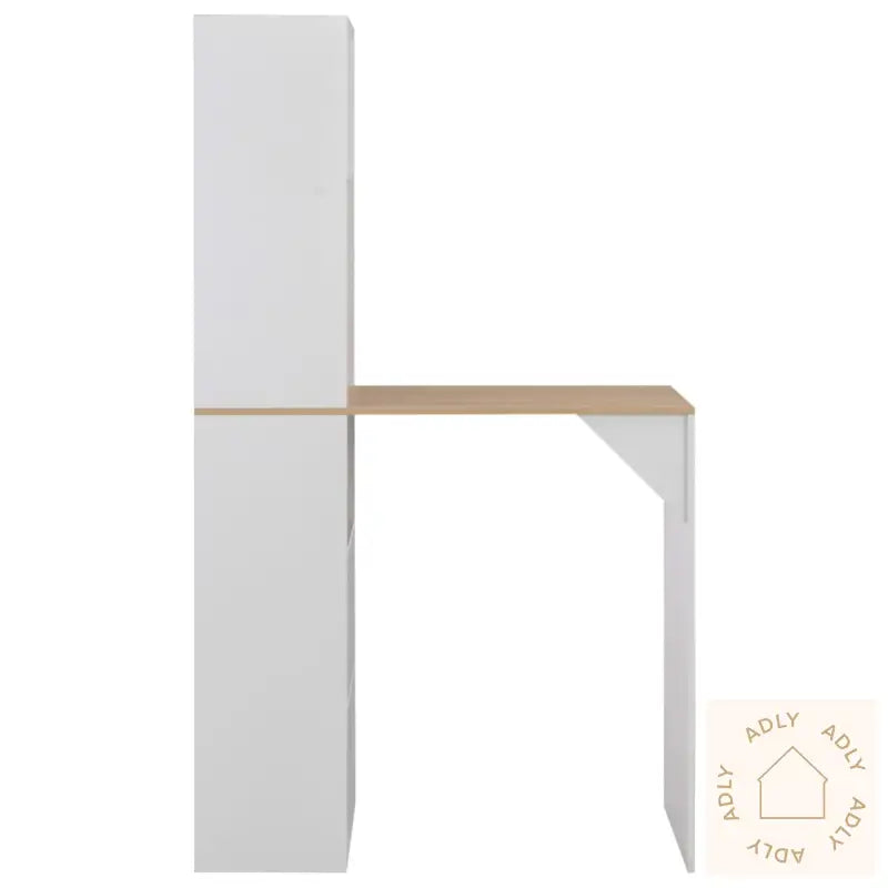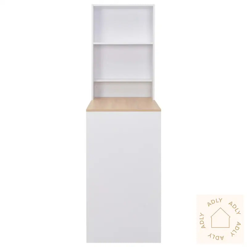 Farger: hvit med naturlig bordplateMateriale: konstruert treSamlet mål: 115 x 59 x 200 cm (L x B x H)Mål bord: 115 x 59 x 107,5 cm (L x B x H)Mål skap: 59 x 35 x 200 cm (B x D x H)Med rikelig lagringsplass