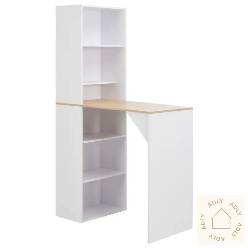 Bordet har et romslig oppbevaringsskap, hvor du enkelt kan plassere vinflasker, glass eller annet tilbehør. Materialet i slitesterkt konstruert tre gir ikke bare høy holdbarhet, men gjør også at det er stabilt og lett å holde rent – perfekt om du liker praktiske møbler som varer lenge. Den L-formede rammen gir ekstra stabilitet, samtidig som det ser moderne ut på kjøkkenet. Bordets gjennomtenkte design gjør det superkomfortabelt å sitte ved, enten du vil nyte et glass vin, kaffe, eller bare ha et rolig øyeblikk for deg selv.