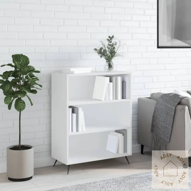 Solid materiale: Bokhyllen er laget av konstruert tre av høy kvalitet med en jevn overflate. Dette materialet gir både robusthet, stabilitet og god motstand mot fukt, noe som betyr at den vil vare lenge og tåle daglig bruk.Rikelig lagringsplass: Med tre åpne hyller får du god plass til bøker, magasiner eller dekor – alt holdes oversiktlig og lett tilgjengelig. Ideelt for deg som liker både orden og design på ett sted.Stabil og solid topp: Den stabile toppen av hyllen passer perfekt til å sette frem pyntegjenstander, rammer med bilder, eller grønne planter, slik at du kan vise frem det som er viktigst for deg. Det gjør bokhyllen til et naturlig blikkfang i rommet.Metallføtter: De moderne metallføttene gir et trendy uttrykk som passer godt sammen med annen innredning og andre bokhyller og stående hyller. Samtidig sørger de for ekstra stabilitet – både på tepper og harde gulv.Advarsel: