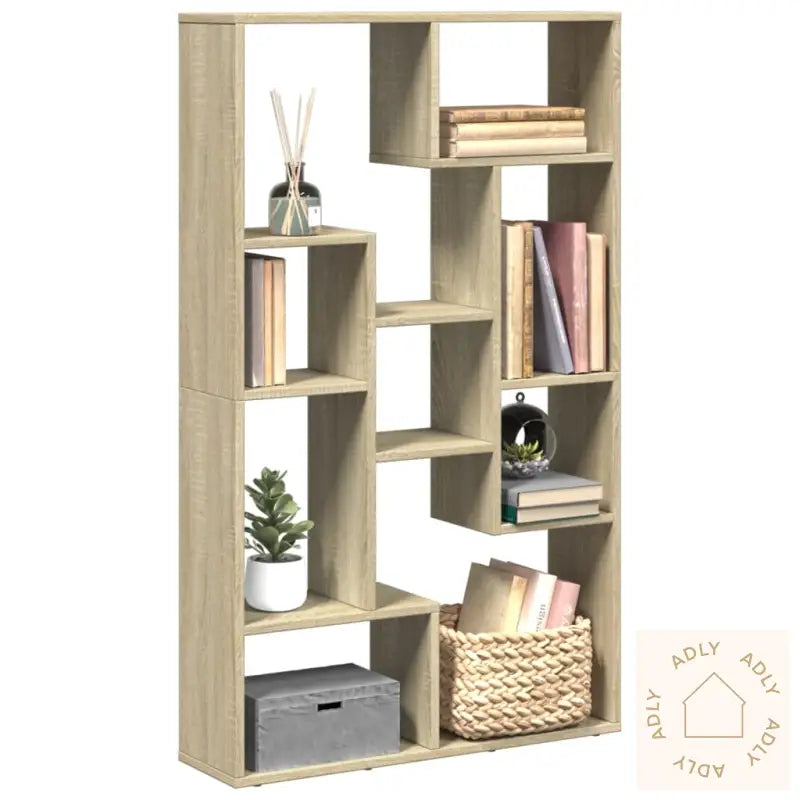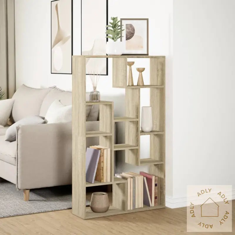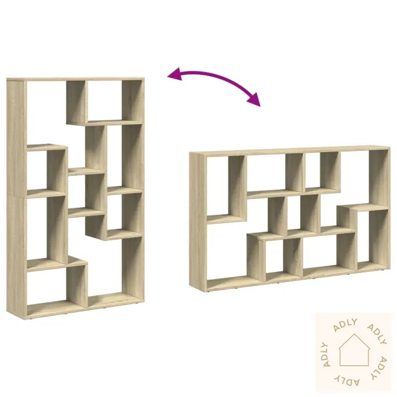 Stabilt og slitesterkt materiale: Bokhyllen er laget av konstruert tre, kjent for sin holdbarhet og stabilitet. Overflaten er jevn og motstandsdyktig mot både fuktighet, vridning og sprekker. Dette gjør at hyllen holder seg pen og funksjonell i mange år, selv ved daglig bruk.Rikelig med oppbevaringsplass: Med ni åpne rom i ulike størrelser gir denne sonoma eik-bokhyllen smarte og fleksible løsninger for oppbevaring av bøker, dokumenter, dekor, kurver eller småting. Her får du plass til alt fra små klær til større esker – perfekt for alle rom hvor det trengs ekstra hagemøbler eller nye møbler til hjemmet!Fleksibelt design: Du kan velge om bokhyllen skal plasseres stående eller liggende, avhengig av hva som passer best hjemme hos deg. Uansett gir den et moderne preg enten du bruker den som romdeler, veggoppbevaring eller displayhylle.Allsidig bruk: Enten du trenger ekstra lagring i stua, på soverommet, kontoret eller kjelleren, glir sonoma eik-bokhyllen rett inn. Den passer godt til å vise frem interiørdetaljer og pyntegjenstander, eller som et praktisk supplement til andre utendørsmøbler, for eksempel i en hagestue.Lettstelt: Den glatte overflaten gjør det enkelt å holde hyllen ren – alt du trenger er en fuktig klut. Et møbel med minimalt vedlikehold, for deg som ønsker en praktisk hverdag!Advarsel: