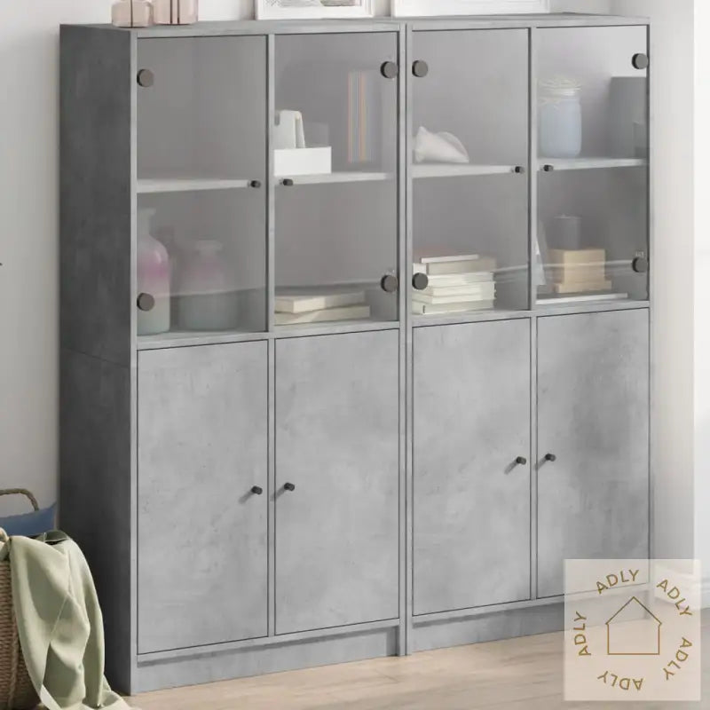 For å forhindre at produktet velter, må du bruke den medfølgende festeanordningen.Farge: betonggråMaterialer: konstruert tre, glassMål: 136 x 37 x 142 cm (B x D x H)Mål rom: 32 x 37 x 32 cm (B x D x H)Antall rom: 16Montering kreves: jaLegal Documents: