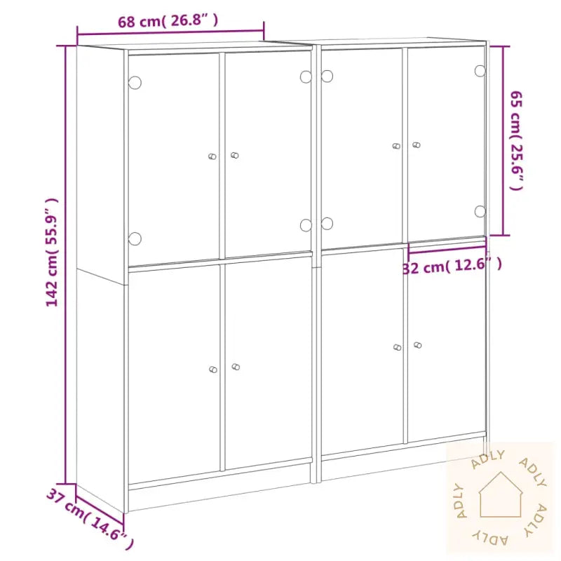 Solid og holdbart materiale: Bokhyllen er laget av konstruert treverk av høy kvalitet som både har en glatt overflate, og kan skilte med god styrke og stabilitet. Dette materialet er dessuten fuktbestandig, noe som gir lang levetid og gjør møblene enkle å vedlikeholde.Rikelig med oppbevaringsplass: Med hele 16 rom får du rikelig plass til å holde orden på store samlinger av bøker, blader og dokumenter. Dette gjør bokhyllen ideell for både stue, hjemmekontor og andre rom hvor du vil ha oversiktlig oppbevaring.Stabil og solid topp: Øverst på hyllen er det en robust flate som egner seg perfekt for å vise frem dekorative detaljer, familiebilder eller grønne planter. Slik kan du enkelt sette ditt personlige preg på oppbevaringen.Praktisk design: Smart oppbevaring bak dører lar deg skjule viktige ting og beskytter dem mot støv. Håndtakene gjør det lettvint å åpne og lukke dørene, selv når du har hendene fulle.Advarsel: