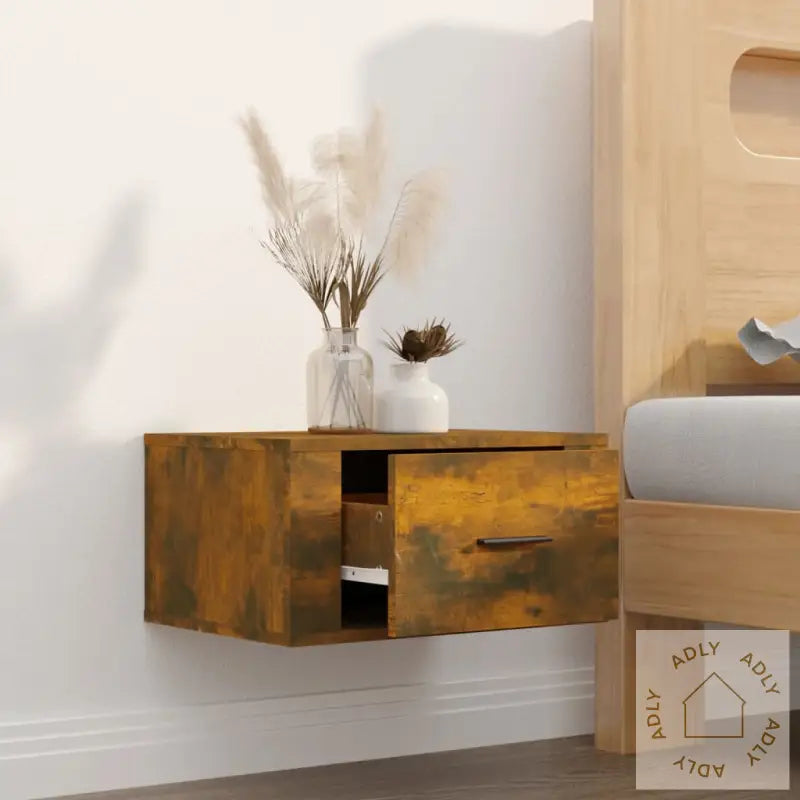 Slitesterkt materiale: Dette nattbordet er laget av konstruert tre i høy kvalitet, som gir en jevn og pen overflate. Materialet gir god styrke og stabilitet, samtidig som det er motstandsdyktig mot fuktighet – ideelt valg for møbler som skal holde lenge.Rikelig med lagringsplass: Med det flytende nattbordet får du nok oppbevaringsplass til bøker, vekkerklokke, lesebriller eller andre småting du vil ha lett tilgjengelig ved sengen.Veggmontert funksjon: Siden nattbordet er vegghengt, frigjøres verdifull gulvplass og romfølelsen blir luftigere – smart for både små og store rom. Perfekt hvis du ønsker å kombinere minimalistisk uttrykk med praktisk bruk.Robust topp: Den solide toppen av det vegghengte nattbordsskapet gir god plass til å vise frem favorittdekor, som bilder, planter eller små pyntegjenstander. Gjør det personlig med tilbehør som matcher resten av dine møbler.Merk: