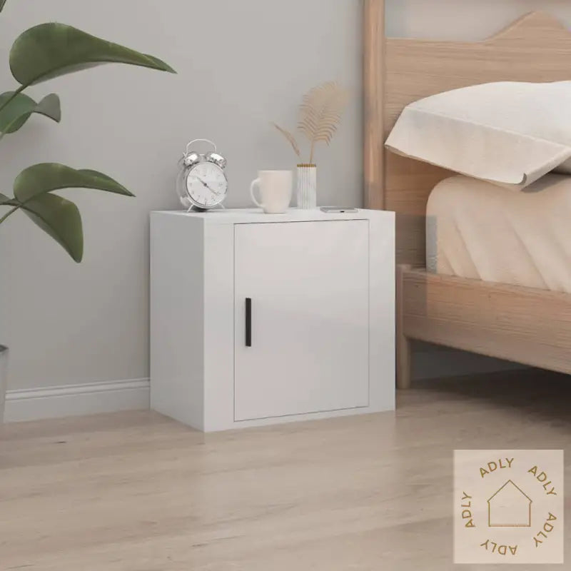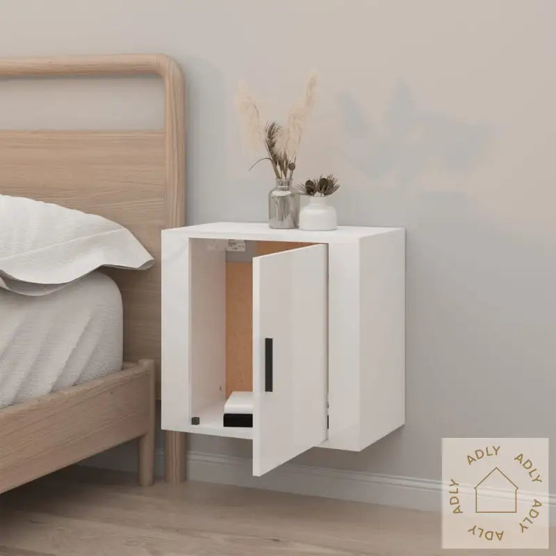 Skruer og plugger til innfesting i veggen er ikke inkludert. Velg passende skruer og plugger til din veggtype. Hvis du er usikker, bør du få fagkyndig hjelp. Les instruksjonsveiledningen nøye før montering.Alle produkter leveres med tydelig monteringsveiledning i esken for enkel og rask montering.Farge: Høyglans hvitMateriale: Konstruert treMål: 50 x 30 x 47 cm (L x B x H)Med sitt moderne uttrykk kombinerer dette flytende nattbordet design og funksjon, og gir deg smarte, plassbesparende og praktiske møbler til hjemmet. Perfekt når du ønsker å oppdatere soverommet med moderne møbler som også gir ekstra oppbevaringsmuligheter og bidrar til å skape en ryddig atmosfære.