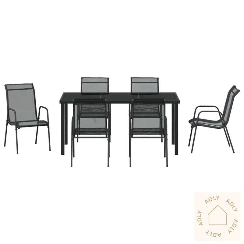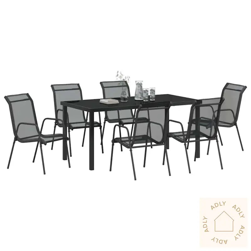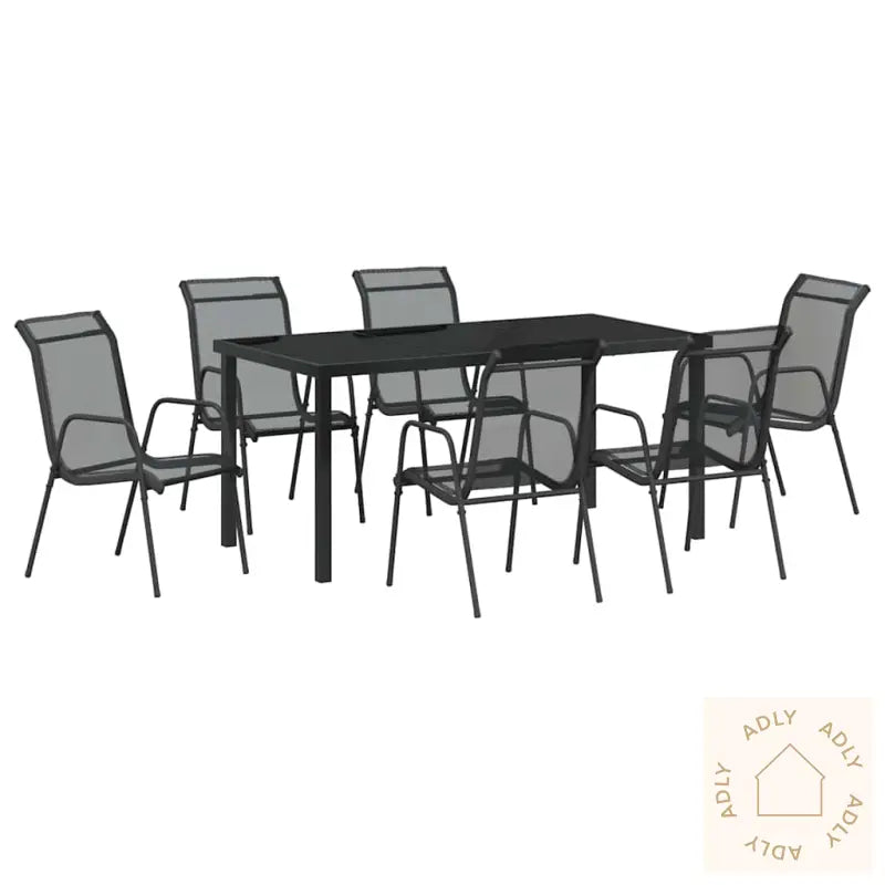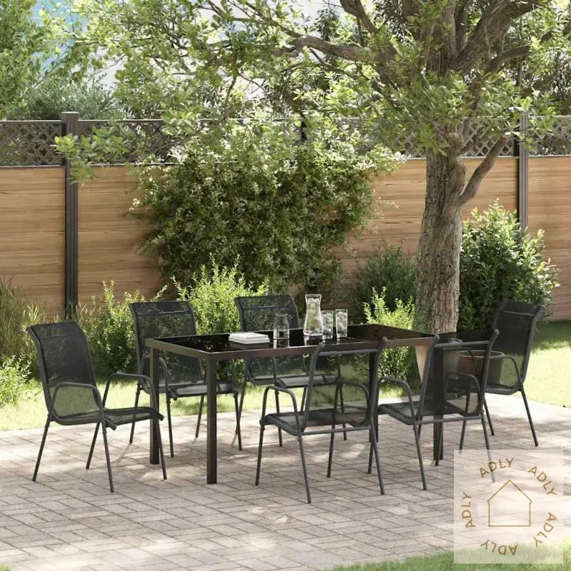 Antall elementer: 3Farge: SvartForm: RektangulærMateriale: MetallstålOverflatebehandling: Pulverlakkert for ekstra holdbarhet og enkel rengjøringInnendørs/Ute: Kun utendørsBeskyttelse inkludert: NeiRom: Hage og terrasseBatterier inkludert: NeiHodegjerde inkludert: NeiMaks antall personer: 6Setedybde: 66 cmSetekapasitet: 1Gyngestol: NeiStige: NeiMerke: vidaXLLeveransen inneholder: 1 bord og 6 stolerMontering kreves: JaAnbefalt antall personer for montering: 2Dette hagespisesettet gir deg fleksible løsninger og god sittekomfort til alle anledninger utendørs. Stilen er både moderne og tidløs, så den glir fint inn med ulike typer hagemøbler og møbler til hjemmet. Med solide materialer og praktisk utforming blir det enkelt å samle folk til hyggelige måltider eller avslappende stunder ute, uansett om det er på terrassen, i hagen eller på balkongen.