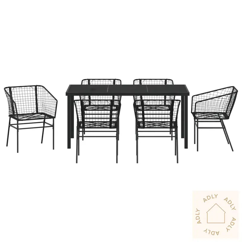 Holdbare materialer: PE-rottingen etterligner ekte rotting, men er motstandsdyktig mot regn, sol og temperatursvingninger. Dette gjør at møblene holder seg pene sesong etter sesong, og krever lite innsats for å holde rene og fine.Behagelige sitteopplevelser: Med solid ryggstøtte og komfortable armlener får du optimal støtte enten du vil nyte et godt måltid, lese en bok eller bare lene deg tilbake og slappe av. Setet er utformet for langvarig komfort.Stabil ramme: Rammen i pulverlakkert stål øker stabiliteten betraktelig, slik at hagemøblene dine står støtt selv på ujevnt underlag. Denne holdbare konstruksjonen sikrer trygg og langvarig bruk, perfekt når du samler venner og familie.Enkel vedlikehold: For å friske opp stolene trenger du bare varmt vann og litt mild såpe – enkelt og greit. Ved å bruke et møbeltrekk når de ikke er i bruk, forlenger du levetiden ytterligere og sørger for mindre slitasje fra vær og vind.Kompakt design: Stolene måler 62 x 63 x 83 cm, som gjør dem fleksible og lette å plassere selv på små balkonger, trange terrasser eller i hagen. De passer til voksne personer opp til 110 kg, og gir god sitteplass uten at de tar for mye rom.Antall artikler: 4Farge: SvartForm: RektangulærMateriale: Syntetisk polyrottingUtførelse: PulverlakkertInnendørs/Ute: Kun utendørsTrekk inkludert: NeiRom: Garten und TerrassegBatterier inkludert: NeiInnleggsplate inkludert: NeiKapasitet: 110Maksimalt antall personer: 2Maksimal vekt: 110 kgOverflathøyde: 3,00 cmBein høyde: 45,00 cmSetedybde: 48,00 cmSittekapasitet: 1Gyngestol: NeiStige: NeiMerke:Levering inneholder: 2 hage stolerMontering kreves: JaAnbefalt antall personer for montering: 2