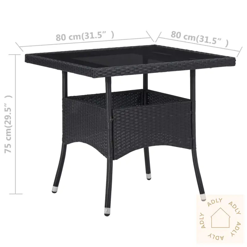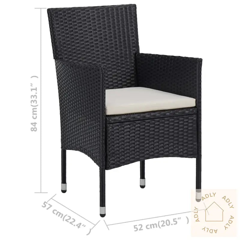 For å holde hagemøblene pene lengre anbefaler vi bruk av et vanntett trekk når de ikke er i bruk, slik at du beskytter investeringene dine mot vær og vind.Farge polyrotting: svartFarge pute: kremhvitMaterialer: polyrotting, pulverlakkert stål, stoff (100 % polyester), herdet glassMål bord: 80 x 80 x 75 cm (L x B x H)Mål stol: 52 x 57 x 84 cm (B x D x H)Mål sete: 39/44,5 x 46 cm (B x D)Høyde sete fra bakken (uten pute): 42 cmHøyde fra bakken armlene: 62/65 cmMål ryggstøtte: 38/45 x 53 cm (B x H)Tykkelse setepute: 4 cmMontering kreves: jaLeveransen inneholder:1 x bord2 x stoler2 x puter