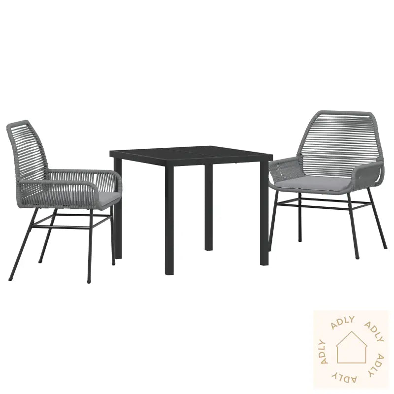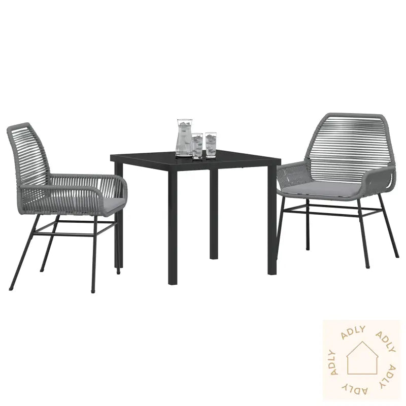Dette hagesettet gir et moderne preg til uteplassen din og kombinerer stil med komfort – det passer perfekt til alt fra terrasse og balkong, til hage eller gårdsplass. Den elegante grå polyrotting-finishen og mørkegrå putene gir settene et stilfullt uttrykk som gjør det enklere å skape et innbydende område for både avslapning og sosiale sammenkomster. Her kan du nyte rolige stunder alene, eller samle familie og venner i trivelig selskap.