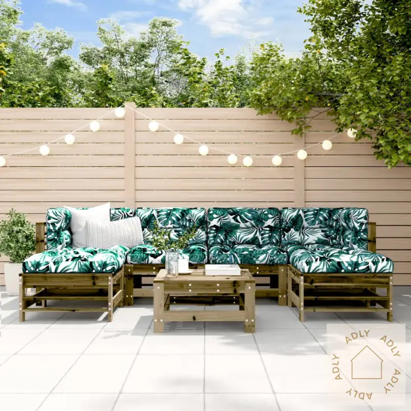 For å bevare utseendet på dine utemøbler anbefales det å bruke et vanntett trekk når de ikke er i bruk.Merk at puter ikke følger med i leveransen.Materiale: Trykkimpregnert furu som gir styrke og holdbarhetMateriale lameller: Kryssfiner for ekstra stabilitet og moderne designMål midtsofa: 57,5 x 63,5 x 60 cm (L x B x H)Mål hagefotskammel/salongbord: 57,5 x 57,5 x 30 cm (L x B x H)Mål hjørnesofa: 63,5 x 63,5 x 60 cm (L x B x H)Maksimal lastekapasitet per sete: 110 kgMontering kreves: ja, enkel montering følger med bruksanvisningLeveransen inneholder:2 x midtsofaer3 x hagefotskamler/salongbord2 x hjørnesofaerGi uterommet en oppgradering med disse slitesterke og stilrene hagemøblene. Hagemøbler fra vårt sortiment passer perfekt både alene og sammen med andre møbler til hjemmet, og gjør det enkelt å skape en helhetlig og innbydende atmosfære.