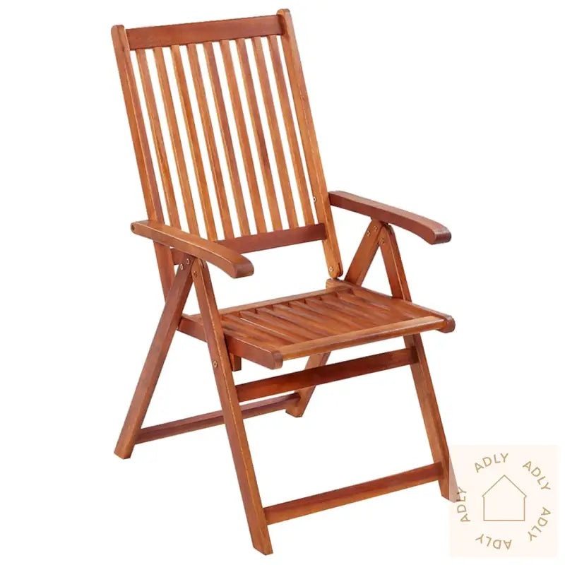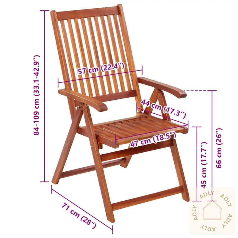 Spisesettet er laget av solid, høykvalitets akasietre – et robust, tropisk løvtre kjent for sin kombinasjon av stil og holdbarhet. Takket være materialets naturlige værbestandighet tåler stolene nordiske forhold år etter år, og den oljebelagte finishen gir ekstra beskyttelse samtidig som det gjør rengjøringen superenkel med bare en fuktig klut. Setet har en justerbar rygg som kan reguleres til 5 behagelige posisjoner, så du virkelig kan finne din optimale komfort – enten du nyter lange måltider, leser i solen eller slapper av etter jobb. Når de ikke er i bruk, er det lett å brette sammen stolene for å spare plass, noe som gir deg fleksibilitet og romslighet på uteplassen.