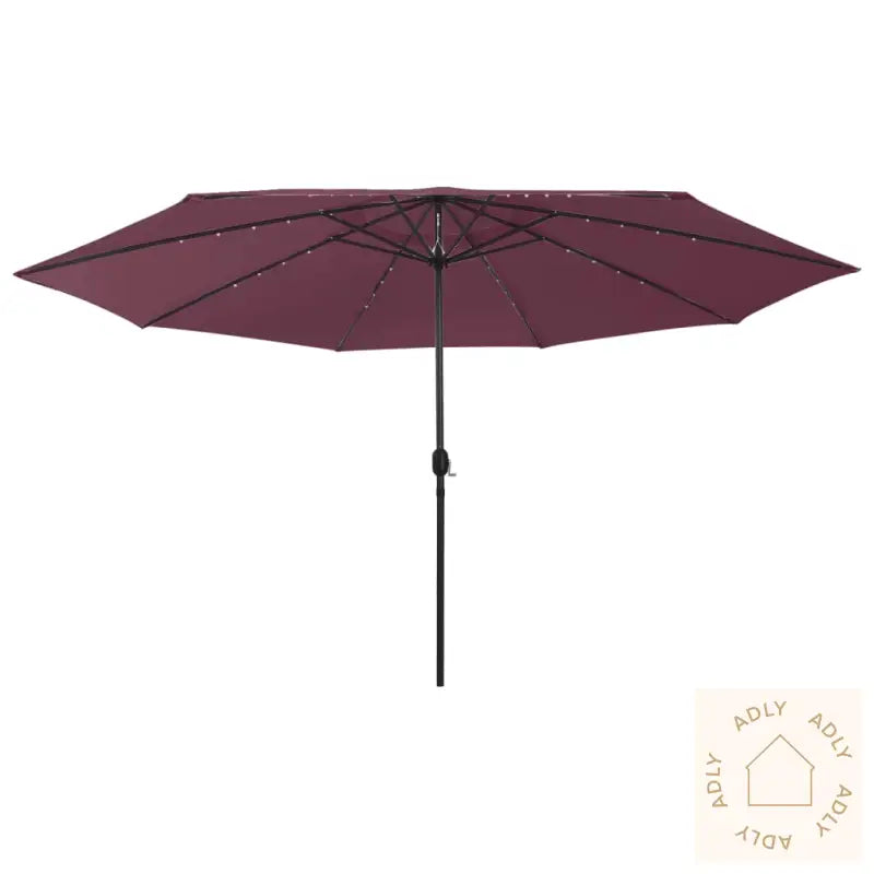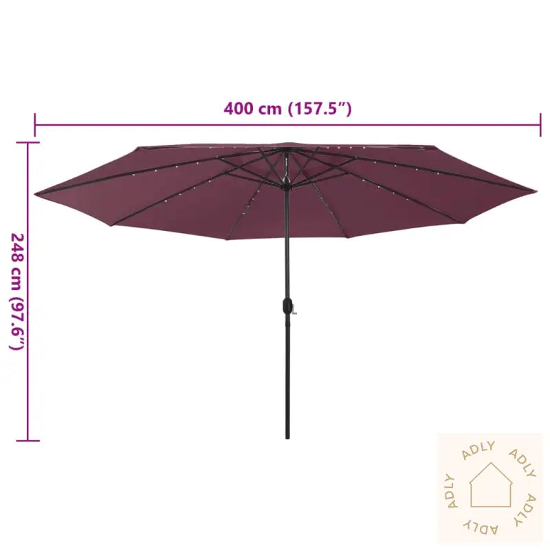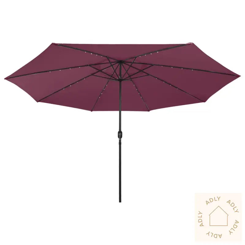 Parasollen er laget av slitesterkt polyesterstoff, som gir god beskyttelse mot sol og holder lenge selv ved hyppig bruk. Den solide metallstangen sammen med robuste spiler sørger for at parasollen står stødig, også på dager med litt vind. Med 32 innebygde LED-lys blir kveldene ekstra hyggelige—du får en koselig, romantisk stemning på terrassen eller i uterommet, nesten som å ta med en del av møbler til hjemmet utendørs! Parasollen åpnes og lukkes enkelt ved hjelp av en praktisk sveivemekanisme, så det blir lett å tilpasse etter vær og behov.