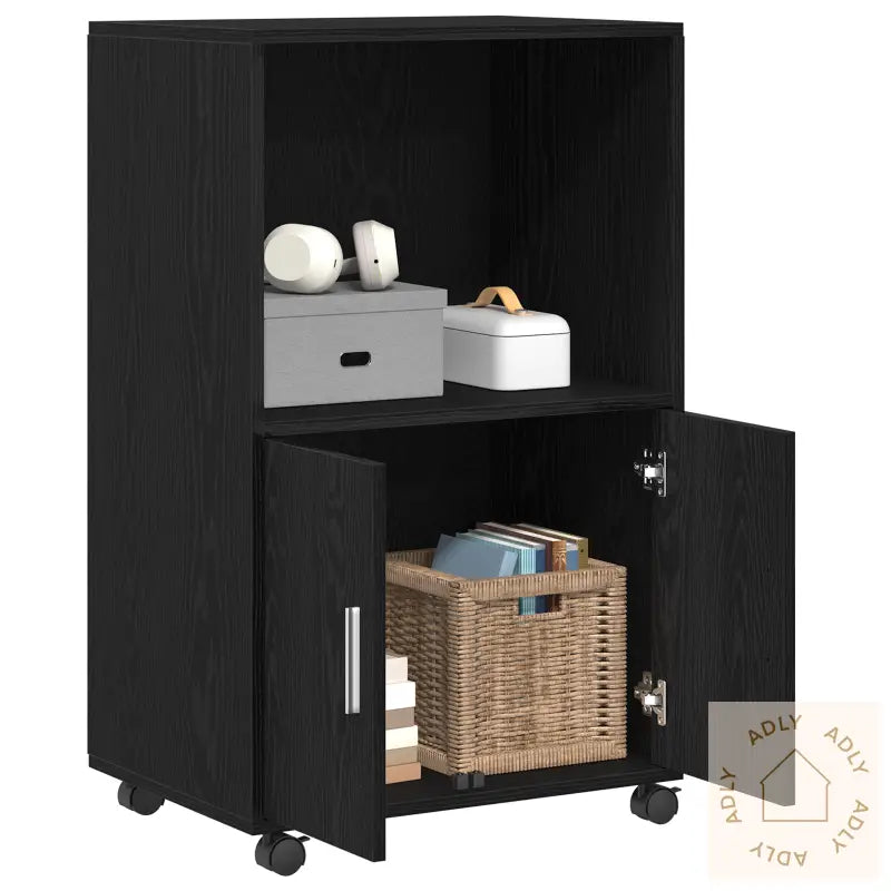 Plassbesparende: Hjørneskapet er laget for å passe perfekt inn i små eller trange rom, så du kan utnytte hver centimeter – spesielt der hvor plassen ellers er litt vrien. Det gir deg muligheten til å holde det ryddig uten å gå på kompromiss med stilen.Flere lagringsmuligheter: De romslige hyllene gir god plass til både pyntegjenstander, bøker eller spiseutstyr, noe som gjør det enkelt å holde orden. Alt ligger pent samlet og lett tilgjengelig, noe som gir en harmonisk følelse i stuen.Stilig utseende: Den svarte eikefargen med matt finish gir et elegant og eksklusivt inntrykk, og passer perfekt sammen med moderne interiør og andre møbler til hjemmet. Skapet blender naturlig inn blant eksisterende innredning og setter prikken over i-en på rommets stil.Enkel mobilitet: Praktiske hjul gjør skapet enkelt å flytte akkurat når det passer deg. Oppsettet i hjemmet ditt kan endres raskt uten stress, kun med et lett dytt på skapet.Holdbar konstruksjon: Dette hjørneskapet er laget av robust konstruert tre og toppet med slitesterk eikefiner. Du får et skap som tåler daglig bruk og alltid beholder sitt freshe og solide preg.Farge: SvartForm: RektangulærMateriale: Konstruert treFinish: MattInnendørs/Ute: Kun innendørsAntall dører: 2Deksel inkludert: NeiRom: StueMål: 55 x 40 x 91 cm (L x B x H)Svinger: NeiMerke: Leveringen inneholder: 1 hjørneskapMontering kreves: JaAnbefalt antall personer for montering: 1