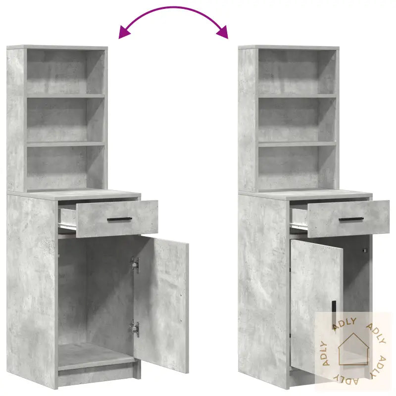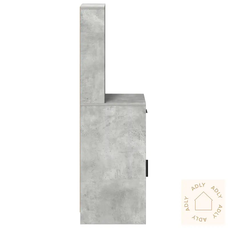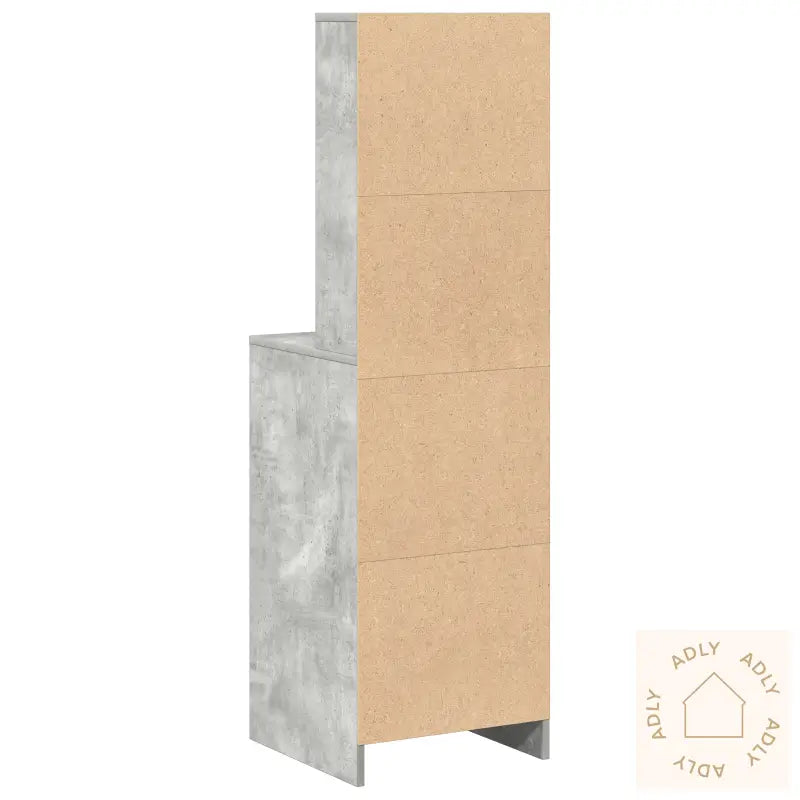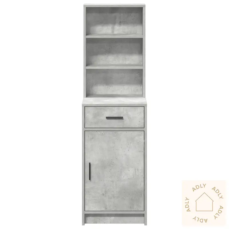 Dette høyskapskapet byr på en smart kombinasjon av praktisk oppbevaring og et moderne preg i betonggrått. Det passer rett inn som en elegant detalj blant dine møbler til hjemmet, uansett om du plasserer det i stuen, spisestuen eller i gangen som et stilig konsollbord. Skapet er laget av robust MDF med en matt grå overflate som gir en tidløs look, og står godt til både minimalistiske og moderne rom.