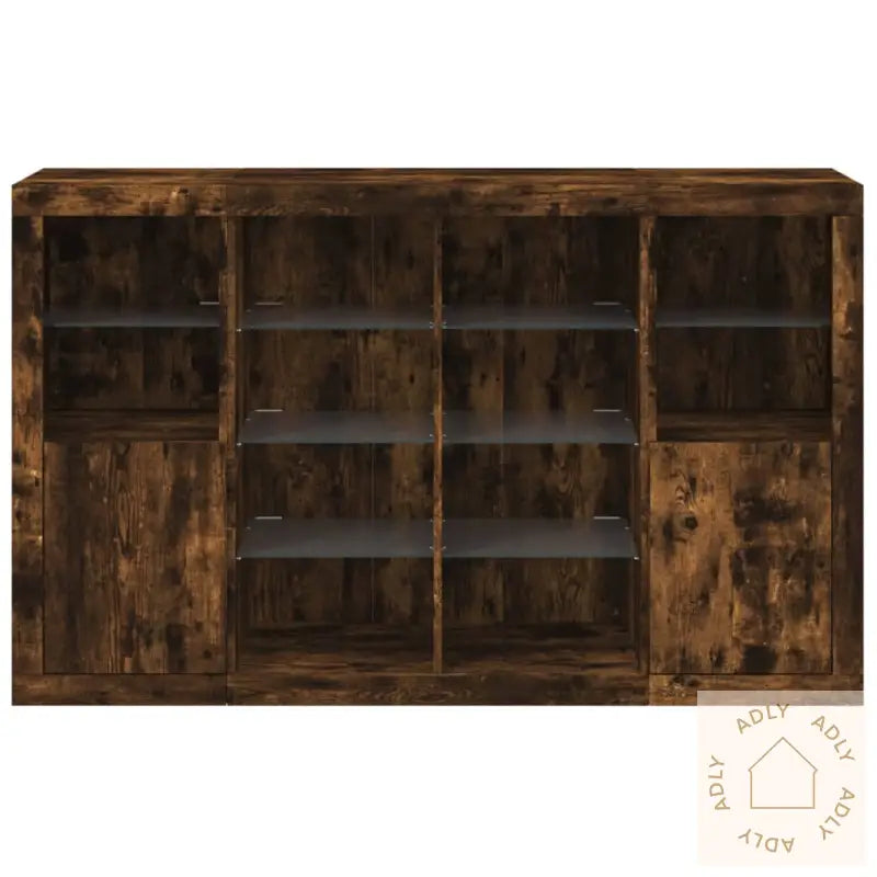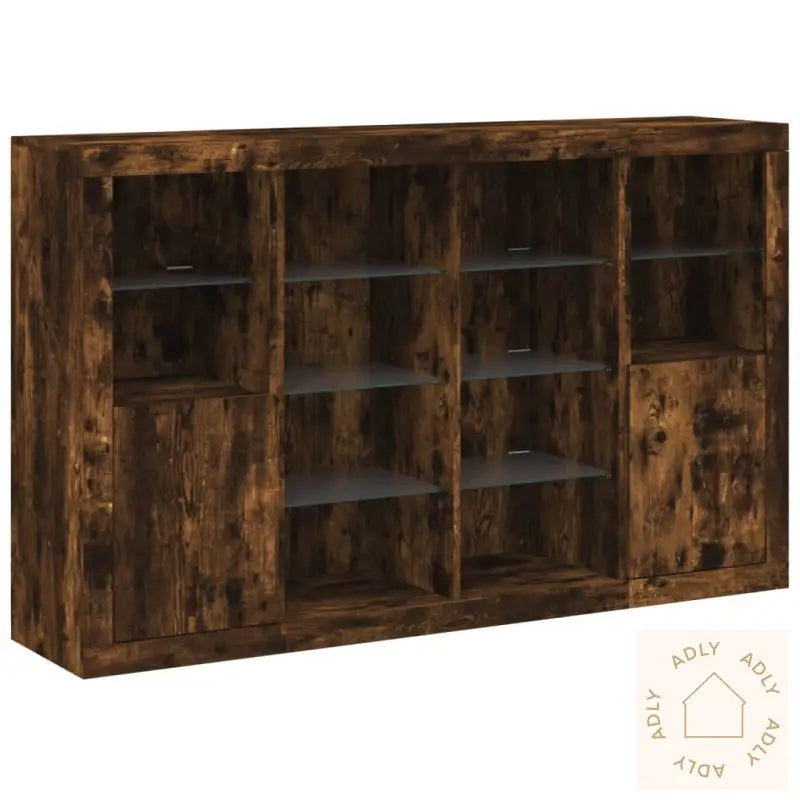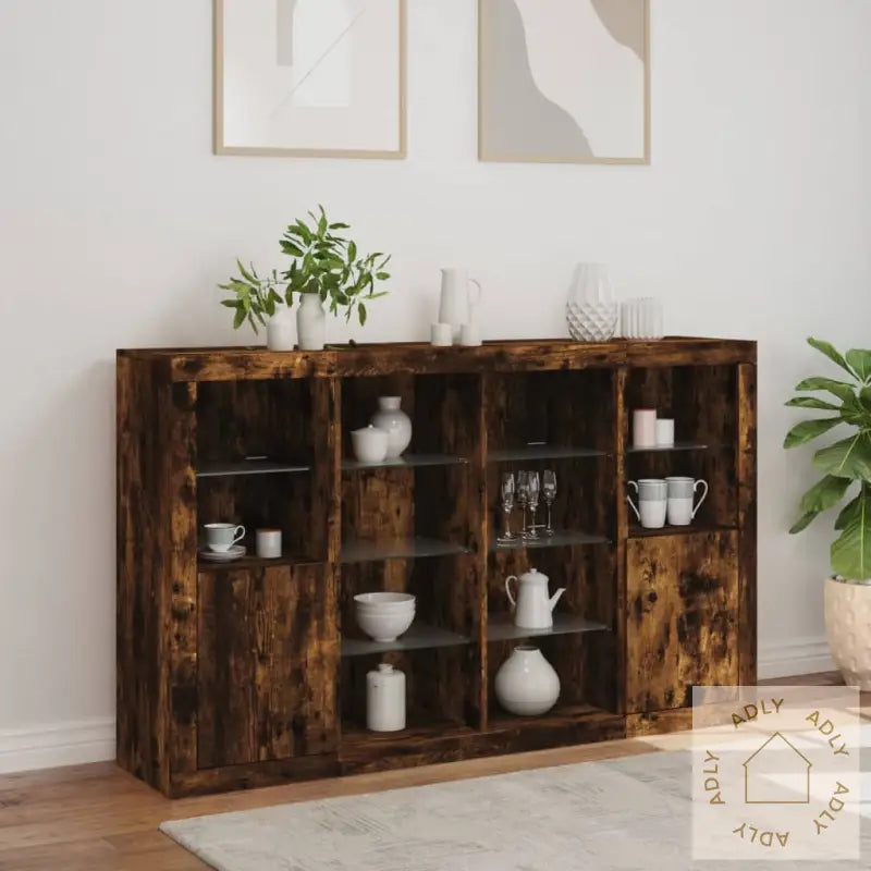 Møbelsettet har USB-kontakt for LED-lysene; husk at du trenger en sertifisert 5V USB-strømkilde (ikke inkludert).Farge: Røkt eikMaterialer: Konstruert tre, glassTotale mål: 163 x 37 x 100 cm (B x D x H)Montering: Ja, krevesPakken inneholder:2 x skjenk: 41 x 37 x 100 cm (B x D x H)1 x skjenk: 81 x 37 x 100 cm (B x D x H)Legal Documents: