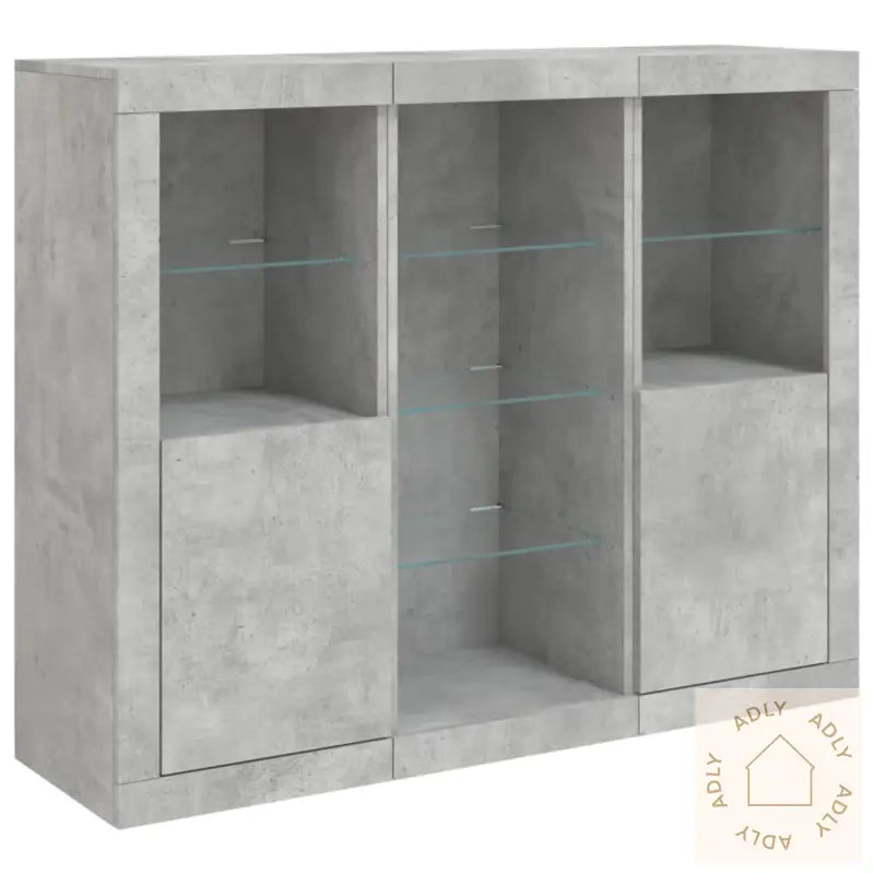 Farge: betonggråMaterialer: konstruert tre, glassMål: 123 x 37 x 100 cm (B x D x H)Montering kreves: jaLeveransen inneholder:3 x skjenkerLegal Documents:
