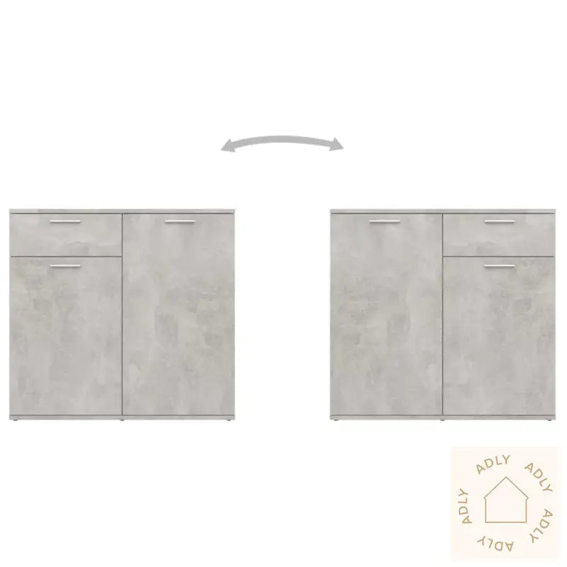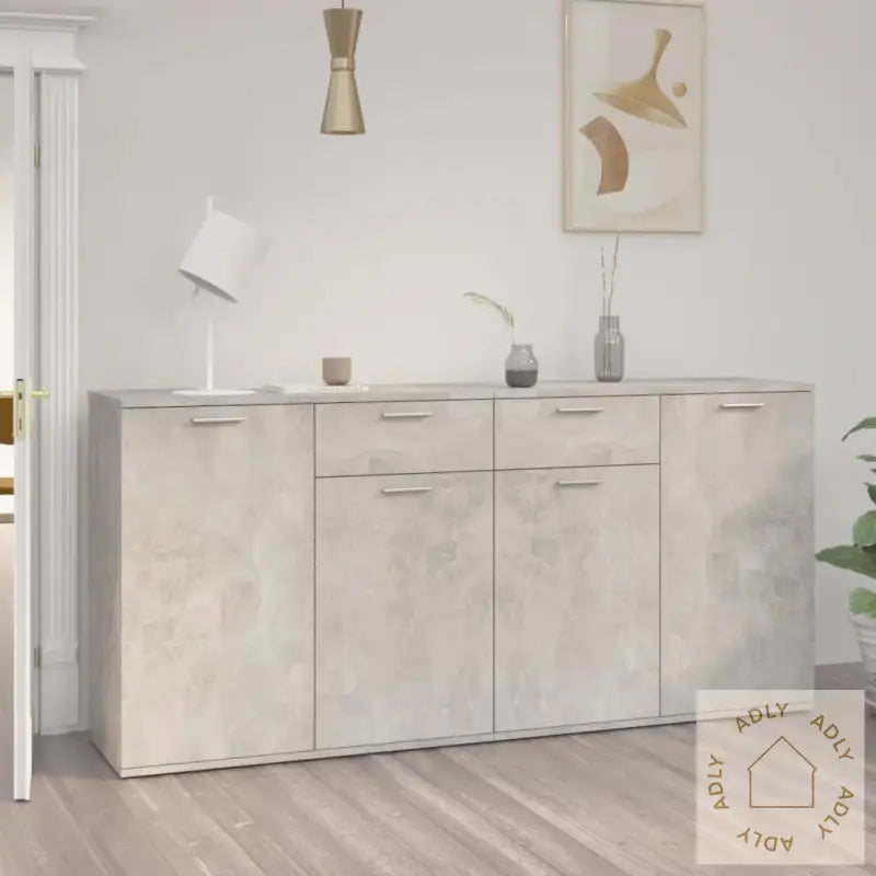 Praktiske dører: Dørene holder tingene dine utenfor synet og beskytter dem mot støv, slik at innholdet alltid fremstår ryddig. Perfekt der du vil kombinere estetikk og funksjonalitet i ett og samme møbel.Advarsel:For å forhindre at det velter må dette produktet monteres med den medfølgende festeanordningen.Farge: betonggråMateriale: konstruert treStørrelse totalt: 160 x 36 x 75 cm (L x B x H)Mål per skjenk: 80 x 36 x 75 cm (L x B x H)Inkluderer 4 dører og 2 skuffer for enkel organiseringMontering kreves: jaMerk: Produktet består av 2 separate skjenker, hver på 80 x 36 x 75 cm.ADVARSEL: For å redusere risikoen for velt, må veggfester brukes etter bruksanvisning.