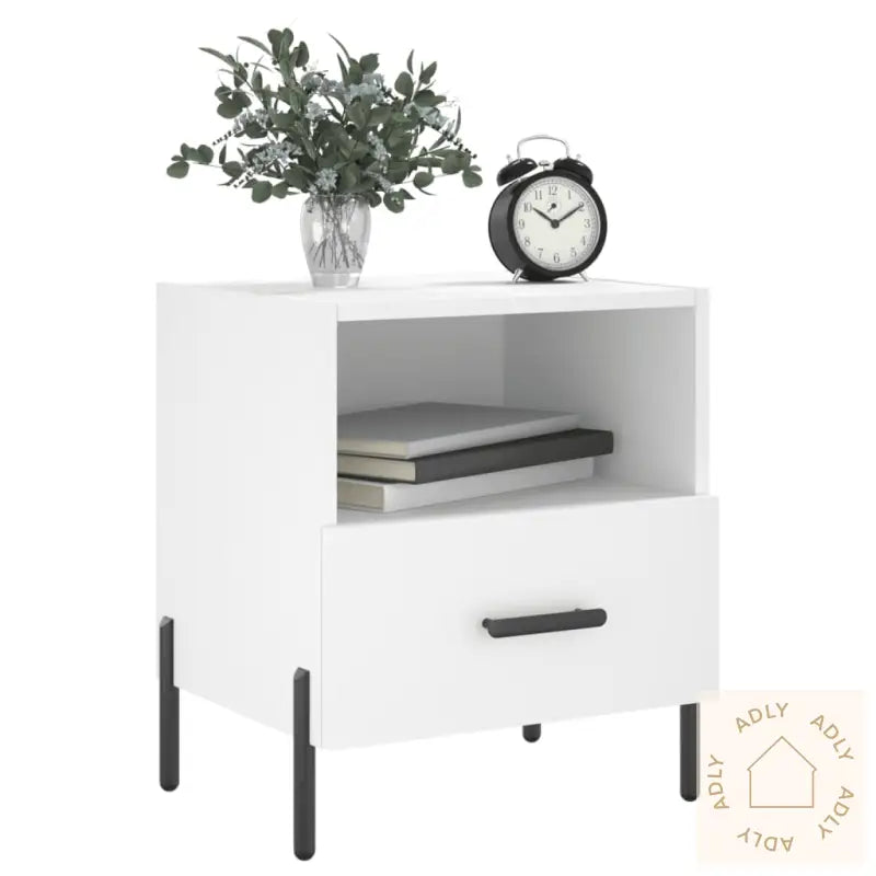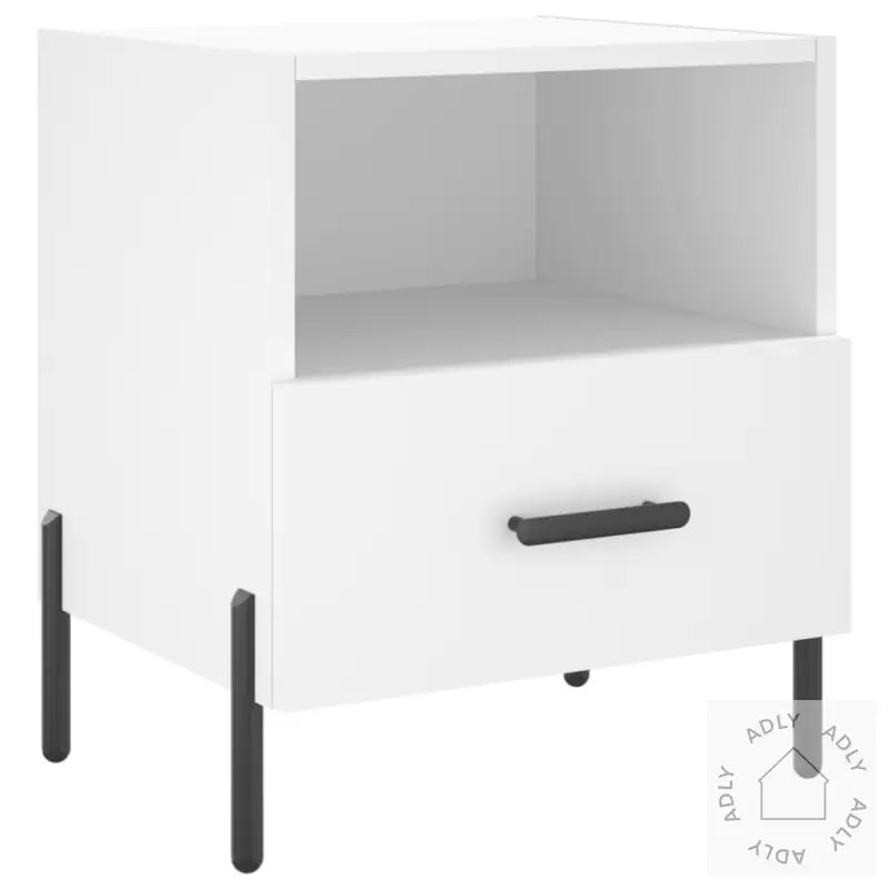 Slitesterkt materiale: Det konstruerte treverket er av eksepsjonell kvalitet. Den glatte overflaten gjør nattbordet både enkelt å rengjøre og behagelig å ta på, samtidig som materialet gir styrke, stabilitet og beskytter mot fuktighet - ideelt for daglig bruk.Romslig lagringsplass: Nattbordet har et praktisk rom og en skuff som gir rikelig med oppbevaringsplass. Her kan du enkelt holde orden på bøker, multimediaenheter og andre småting du gjerne vil ha lett tilgjengelig, så det blir enklere å holde soverommet ryddig.Visningsfunksjon: Toppen på nattbordet har plass til favorittbildene dine, dekorative pynteting eller en blomsterbukett, noe som gir ekstra personlighet og liv til rommet ditt.Metallføtter: De solide metallføttene gir et moderne preg og sikrer at møblene står støtt. Samtidig tilfører de et elegant uttrykk som passer inn i ulike innredningsstiler.Farge: hvitMaterialer: konstruert tre, jernMål: 40 x 35 x 47,5 cm (B x D x H)Montering kreves: jaLeveransen inneholder:2 x nattbord