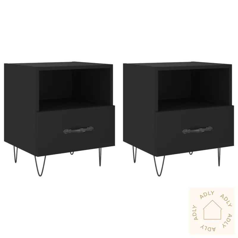 Slitesterkt materiale: Det konstruerte treverket har en glatt og elegant overflate, samtidig som det er kjent for å være sterkt, stabilt og motstandsdyktig mot fuktighet. Dette gir langvarig bruk og enkelt vedlikehold.Romslig lagringsplass: Nattbordet kommer med både et åpent rom og en praktisk skuff, slik at du får romslig lagringsplass til alt fra bøker og multimediaapparater til personlige eiendeler. Med dette har du alltid det viktigste lett tilgjengelig ved siden av sengen.Visningsmuligheter: Toppen av nattbordet gir en flott plass til å vise frem favorittbildene dine, dekorative gjenstander eller blomster, noe som bidrar til å gjøre rommet ekstra koselig og personlig.Metallføtter: De solide metallføttene gir et kult og moderne utseende, samtidig som de bidrar til stabilitet – perfekt for personer som setter pris på både brukervennlighet og design.Farge: svartMaterialer: konstruert tre, jernMål: 40 x 35 x 47,5 cm (B x D x H)Montering kreves: jaLeveransen inneholder:2 x nattbord