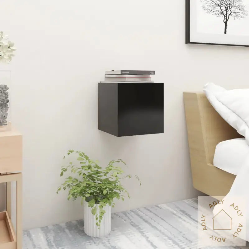 Sideskapet festes direkte på veggen, noe som gir det et svevende, minimalistisk uttrykk og sørger for at gulvplassen bevares fri – perfekt for deg som liker et ryddig og luftig rom. Det romslige oppbevaringsrommet gjør det enkelt å holde magasiner, bøker, fjernkontroller og småting innen rekkevidde, samtidig som alt holdes organisert og oversiktlig. Dette er med på å skape en avslappende atmosfære i soverommet eller andre rom der du ønsker praktiske møbler.