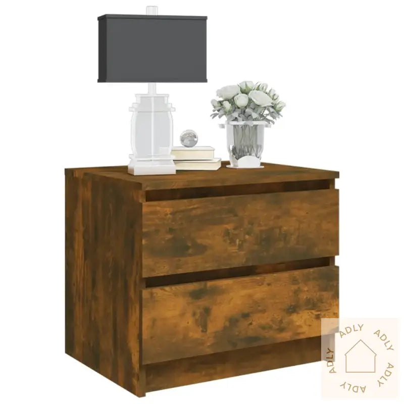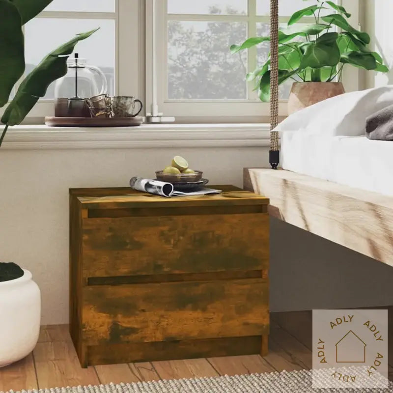 Praktisk materiale: Nattbordet er laget av førsteklasses konstruert treverk med en jevn, stilren overflate. Dette gir ikke bare styrke og stabilitet, men gjør også nattbordet slitesterkt mot fuktighet og utrolig enkelt å holde rent – perfekt for daglig bruk i norske hjem.Smart lagringsplass: De romslige skuffene gir god plass til å organisere tingene dine, enten det er bøker, småting eller alt du vil ha lett tilgjengelig ved sengen. Praktisk hvis du vil ha det ryddig og oversiktlig.Tidløst utseende: De rette linjene og det stilrene designet gjør at dette moderne nattbordet sklir sømløst inn sammen med eksisterende møbler, bokhyller og stående hyller. Det røkte eikefinishen gir en lun og tidløs følelse til interiøret.Farge: røkt eikMateriale: konstruert treMål: 50 x 39 x 43,5 cm (B x D x H)Montering kreves: ja