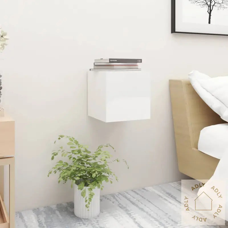 Sideskapene er veggmontert, noe som gir et rent og stilfullt uttrykk og gjør det enkelt å holde gulvet fritt for hindringer – perfekt om du ønsker en romsligere følelse og enkel rengjøring. Inne i skapet finnes det god plass til ting som bøker, magasiner, fjernkontroller eller andre småting du vil ha lett tilgjengelig rett ved sengen. En stor fordel er at døren kan monteres slik at den åpnes mot enten venstre eller høyre, så du kan tilpasse nattbordet etter hvordan rommet ditt er innredet. Overflaten i høyglans hvit utførelse gjør at nattbordet er enkelt å tørke av med en fuktig klut. Skapene leveres i et sett med to, slik at du får enhetlig og moderne stil på begge sider av sengen. Enkle å montere, slitesterke og laget i konstruert tre for lang holdbarhet.