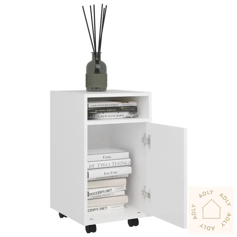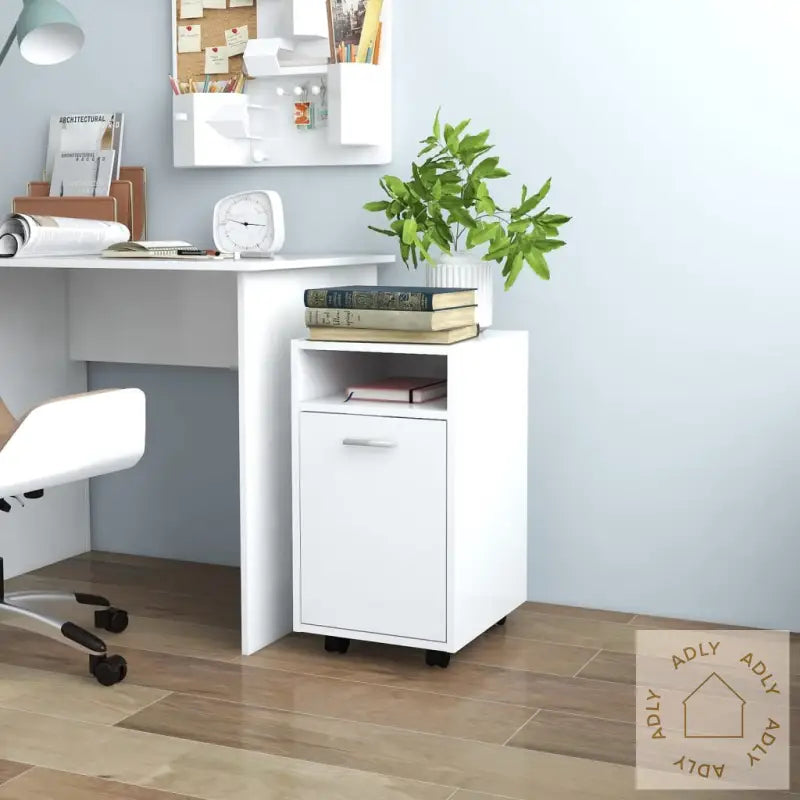 Farge: hvitMateriale: konstruert treMål: 33 x 38 x 60 cm (B x D x H)Inkluderer fire hjulMontering kreves: jaADVARSEL: For å forhindre at produktet velter, må medfølgende festemidler for vegg benyttes