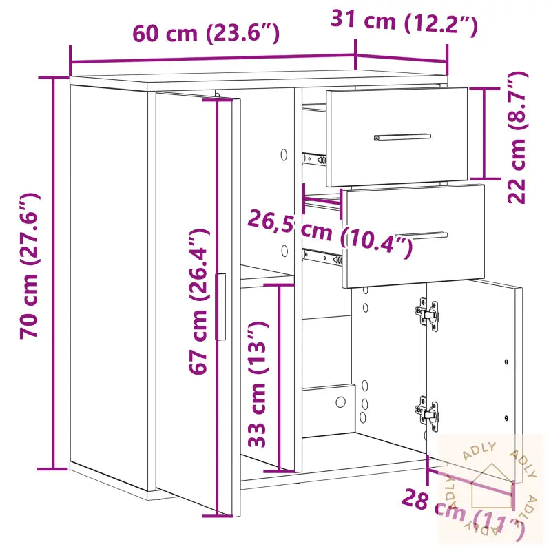 Farge: artisan eikStørrelse: 60 x 31 x 70 cmMateriale: Konstruert treLeveransen inneholder: 1 x SideboardMontering kreves: Yes