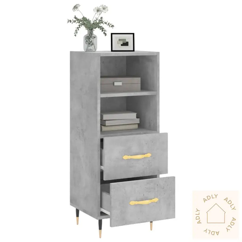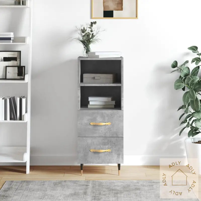 Slitesterkt materiale: Denne skjenken er laget av konstruert treverk av høy kvalitet, noe som gir en glatt og elegant overflate. Det holdbare materialet gir styrke og stabilitet, og tåler både daglig bruk og fuktighet, så du kan ha glede av møbelet i mange år fremover.Metallben: De solide metallbena løfter ikke bare designet, men gir også ekstra stødighet. Metall skaper et moderne preg og sikrer at denne skjenken står støtt på gulvet ditt – uansett om du bruker den i stua, soverommet eller gangen.God oppbevaringsplass: Skjenken har to romslige skuffer og to åpne rom, slik at du enkelt kan organisere og oppbevare alt fra bøker til småting – perfekt for deg som vil ha det ryddig og orden på sakene. Legg gjerne til kurver eller esker for enda mer lagringsplass.Solid topp: Skapets robuste topp er ideell for å vise frem dine favoritter blant dekor, for eksempel fotorammer, grønne planter eller kunstfigurer. Dette gjør det enkelt å sette et personlig preg på interiøret og få mest mulig ut av møbelet.Advarsel: