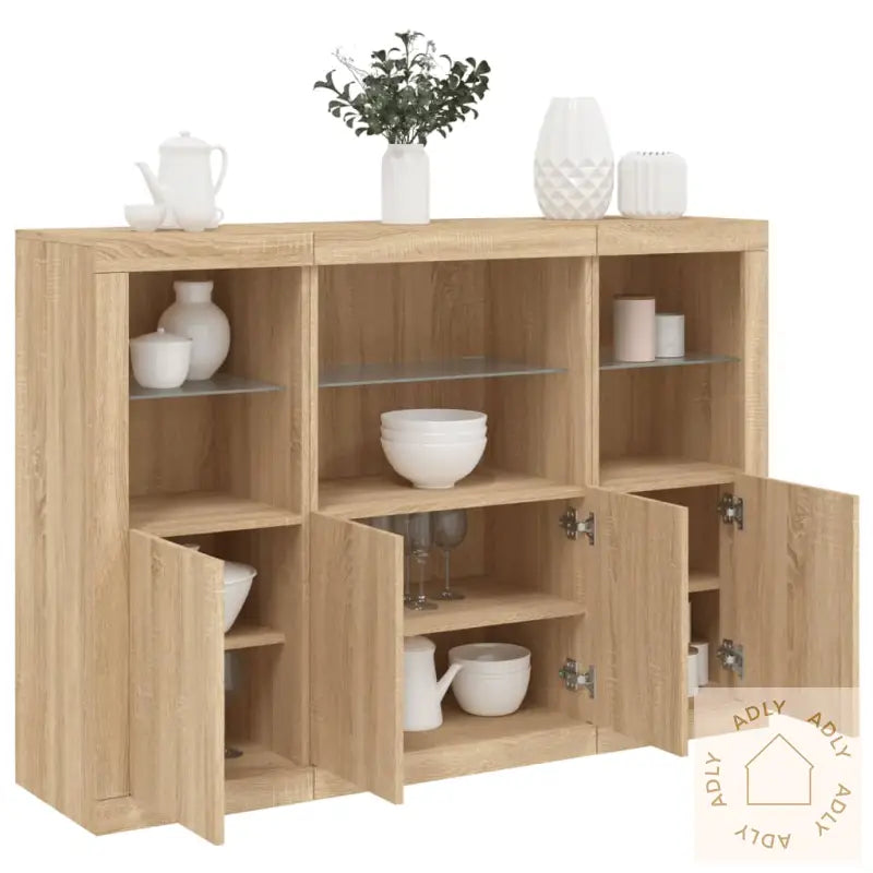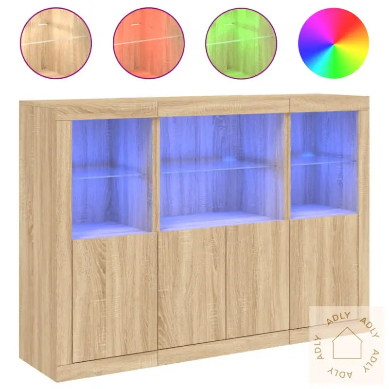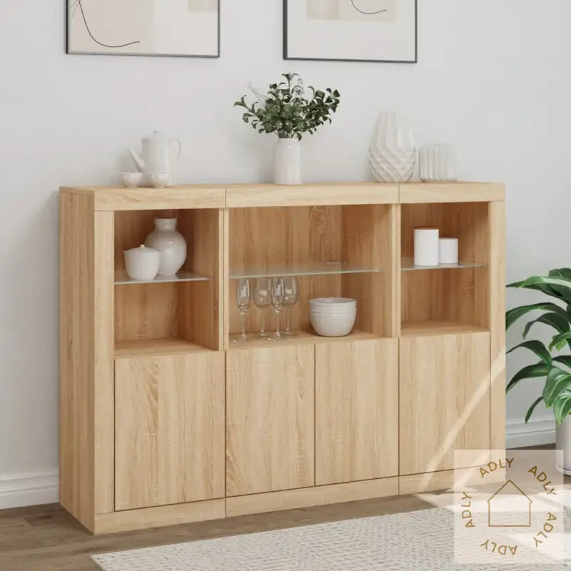 Dekorer rommet ditt enkelt og stilfullt med disse moderne skjenkene med LED-lys – et smart valg når du vil skape en trendy atmosfære i hjemmet. De matcher lett annen innredning og passer spesielt godt med sonoma eik og andre populære møbler til hjemmet.