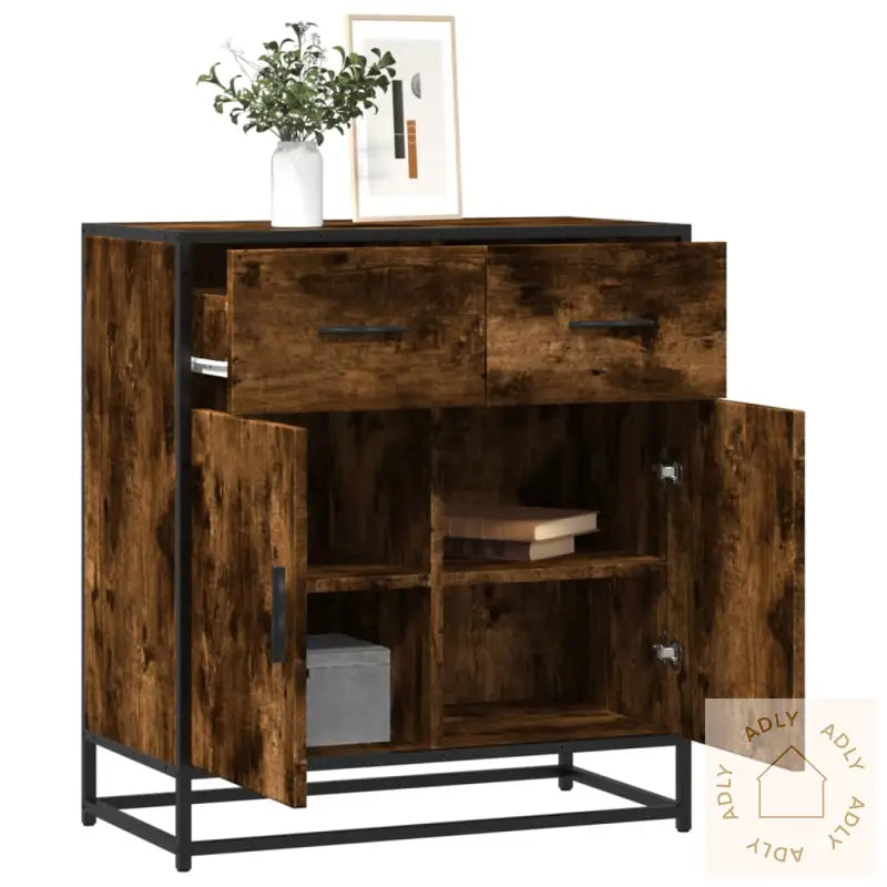 Stabil og langvarig ramme: Skjenken har en robust metallramme som både forsterker det industriinspirerte uttrykket og sikrer lang levetid. Metallrammen gjør ikke bare møbelet stabilt, men tåler også daglig bruk og beskytter mot korrosjon – noe som gir ekstra trygghet over tid.