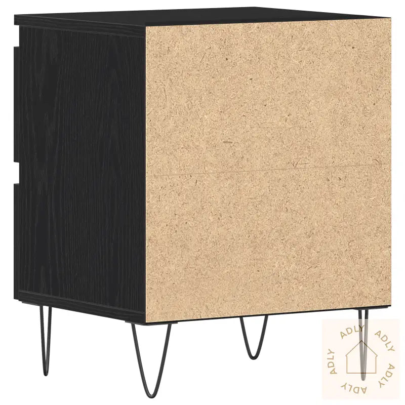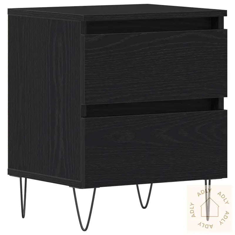 Stilig design: Det minimalistiske uttrykket passer til det meste av interiør og matcher enkelt andre møbler hjemme hos deg. Den svarte, nøytrale fargen er superlett å kombinere, enten du allerede har favoritter fra vår kolleksjon eller ønsker å fornye soverommet ditt.Kvalitetsmateriale: Nattbordet er laget av solid eik med lekre synlige årringer og kraftig MDF. Dette gjør det slitesterkt og fint for daglig bruk, så du kan stole på at møblet holder seg flott i lang tid uten mye vedlikehold.Smart oppbevaring: To romslige skuffer lar deg samle småting, bøker eller elektronikk slik at alt du trenger om natten er ryddig og lett tilgjengelig, perfekt for å få det ekstra zen-følelsen på soverommet.Stødig konstruksjon: Moderne hårnålsben gir både visuell letthet og sterk stabilitet, så nattbordet står stødig selv på tregulv eller tepper. Dette er et møbel du trygt kan bruke hver dag.Enkel rengjøring: Den matte finishen sørger for at støv ikke synes like lett, og et enkelt tørk med en fuktig klut holder nattbordet pent – ideelt for deg som ønsker mindre styr med rengjøringen.Farge: SvartForm: RektangulærMateriale: Tre MDFFinish: MattInnendørs/Ute: Kun innendørs (ikke egnet som utendørsmøbler eller hagemøbler, men passer perfekt blant øvrige møbler til hjemmet).Cover inkludert: NeiRom: SoveromMaksimalt antall personer: 1Maksimal vekt: 20 kgOverflatehøyde: 1,50 cmBen høyde: 20,00 cmMerke:Levering inneholder: NattbordMontering kreves: JaAnbefalt antall personer for montering: 2