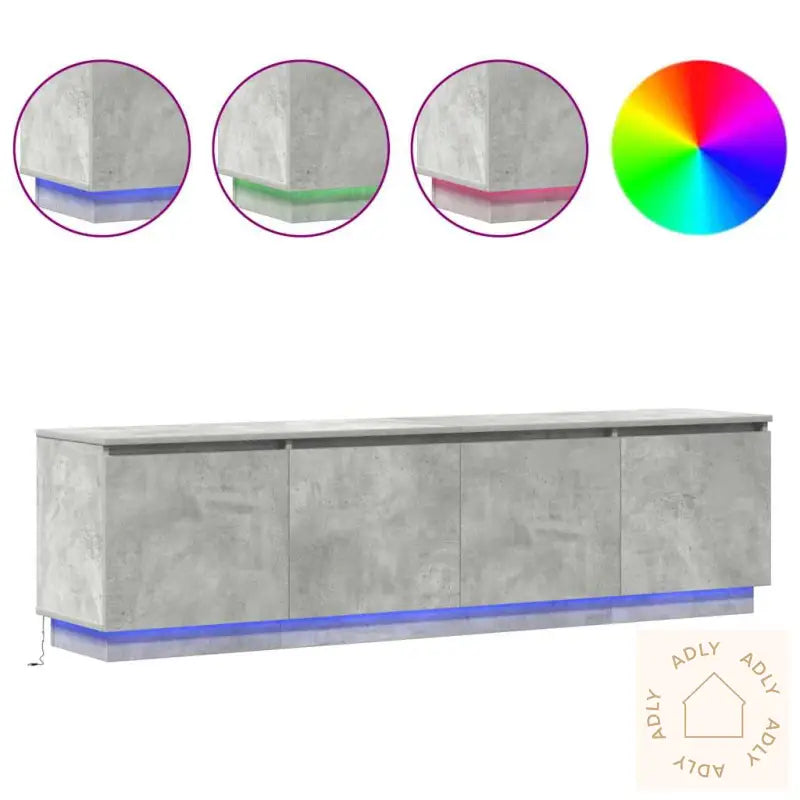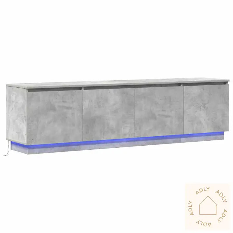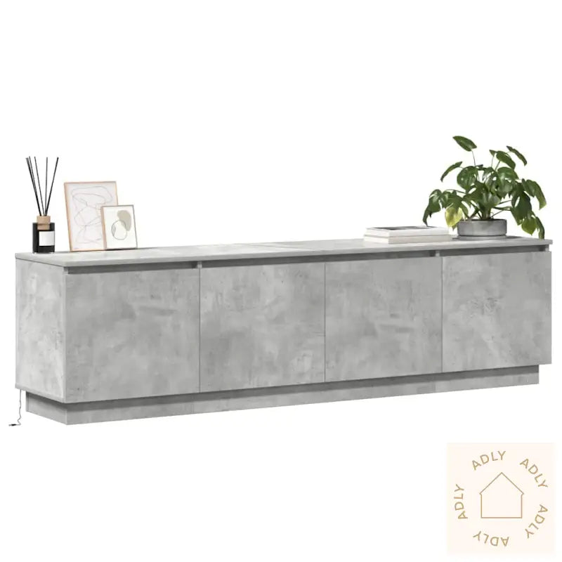 Dette TV-skapet kombinerer moderne stil med praktisk bruk, noe som gjør det til et blikkfang i stuen din. Den elegante betonggrå MDF-konstruksjonen gir skapet et tidløst og trendy preg, mens den innebygde LED-belysningen bidrar til en lun og innbydende atmosfære. Ikke bare får du en stilig måte å vise frem elektronikkomponentene på, men du får også et funksjonelt møbel som løfter hele interiørdesignet i hjemmet.