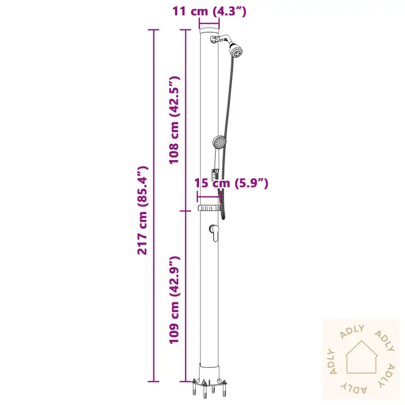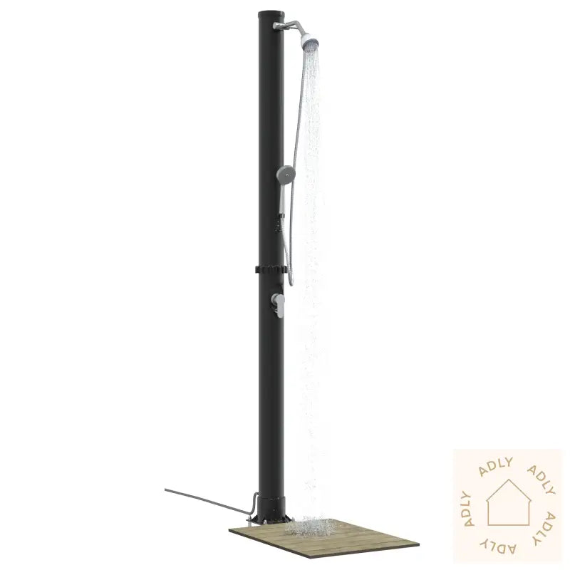 Denne utendørs soldusjen er et smart valg for deg som ønsker funksjonelle hagemøbler med moderne uttrykk. Dusjen gir ikke bare en effektiv og komfortabel måte å skylle av seg på varme, solfylte dager – den løfter også stilen i uterommet ditt med sitt elegante, sylindriske design i matt svart finish. Plasser den ved bassenget, på terrassen eller blant andre møbler til hjemmet ute for en praktisk og hygienisk løsning som gjør sommeren enda bedre.