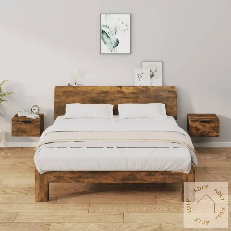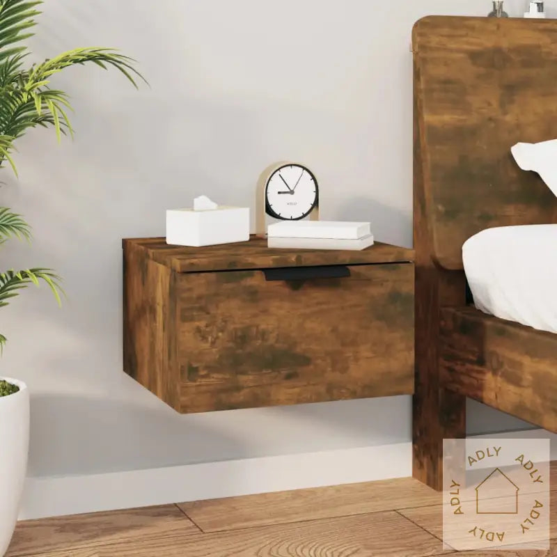 Disse moderne veggmonterte nattbordene kombinerer et stilrent design med funksjonalitet, og blir derfor en tidløs favoritt blant møbler til hjemmet. Overflaten i røkt eik gir et elegant uttrykk som passer inn i de fleste interiørstiler, enten du liker moderne, klassisk eller trendy møbler. Perfekt for deg som ønsker å organisere soverommet uten å fylle opp gulvet.