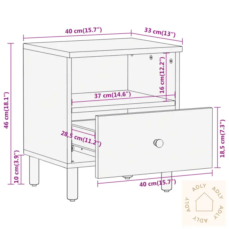 Heltre mango: Nattbordene er laget av heltre mango, et ekstra sterkt tropisk løvtre kjent for sin slitestyrke og unike, vakre trekorn. Hvert møbel blir unikt, med naturlig variasjon i fargen og strukturen – et ekte kvalitetsmøbel du kan ha glede av lenge.