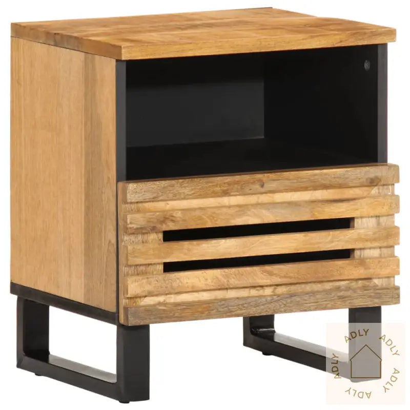 Heltre mango: Våre nattbord er laget av grovt heltre mangotre, et robust og tropisk løvtre kjent for sin styrke. Den unike og naturlige trekornstrukturen gjør hvert nattbord til et spesielt møbel med sitt eget preg – ingen to er like.Rikelig med oppbevaringsplass: Takket være åpne hyller og en praktisk skuff får du god plass til å organisere og vise frem bøker, magasiner eller dekor. Du får orden i sakene samtidig som rommet blir mer innbydende.Stabile og holdbare ben: Skapet står stødig på solide bein av stål, noe som gir et sikkert og stabilt møbel som varer lenge.Godt å vite: